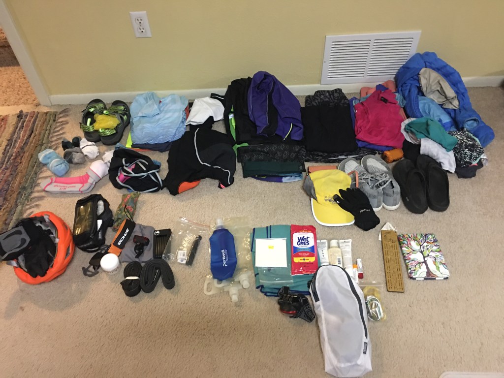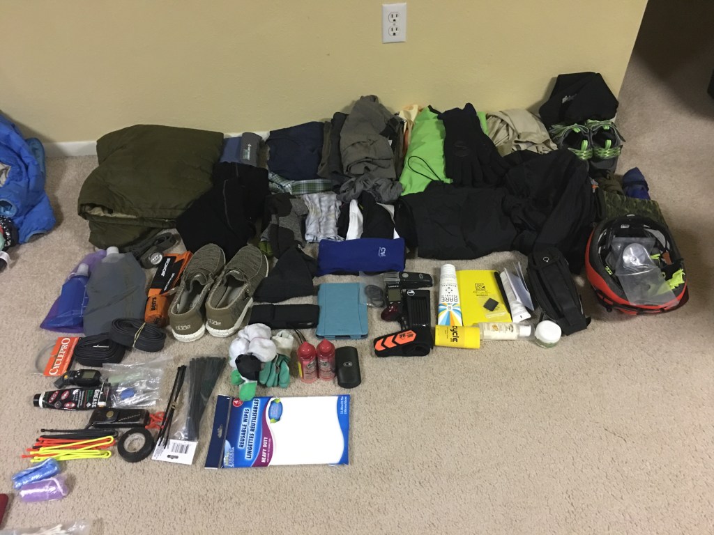 It has taken a few months to collect the necessary gear for this trip. We have it all assembled and sorted by usage. Bike clothes, non- bike clothes, bicycle tools and accessories, miscellaneous items, camping gear, minimal cooking gear.