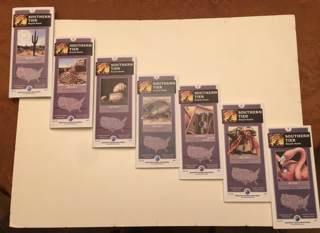 Long white bag pictured holds all of our charging cords for Phones, bike computer, headlights and taillights, kindle, stun gun and portable chargers. Travel cribbage board and deck of cards.