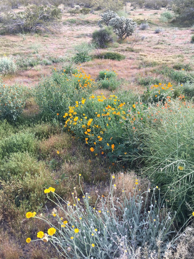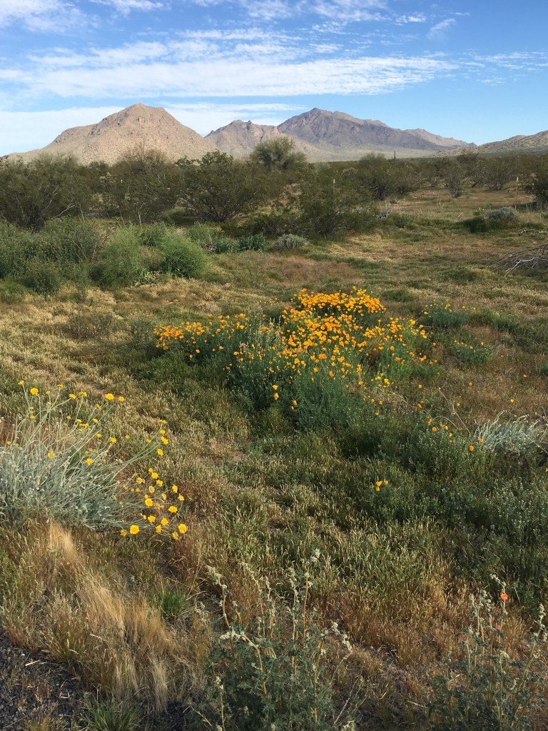 However, the scenery was green and gorgeous. The roadside wildflowers were popping up. Stopped for pictures of several. Arizona poppies were my favorite.