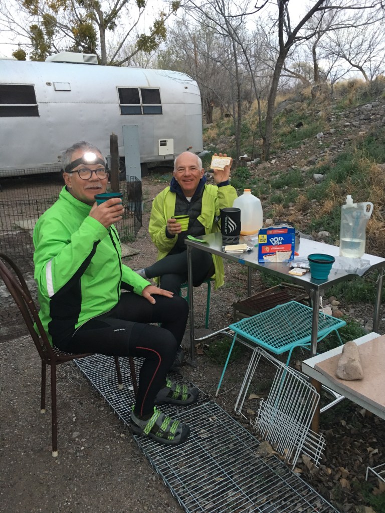 We left Hillsboro with a good early start. Breakfast of Starbucks instant coffee( it’s good) and PopTarts (gift from ACA friends). I haven’t had a pop tart since I was a kid but they’re loaded with calories so a pretty good choice for quick exit. Great little RV camp spot with no street lights so beautiful starry dark skies. When you have to take a middle of the night tent exit to pee it’s nice to have a starry sky😊