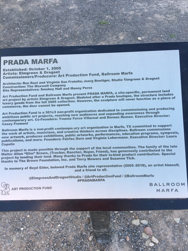 3. Marfa has been an art town for a long time. There is a famous museum there Calle the DIA. It has a later counterpart in Beacon, NY. I love the NY one which is in a former bakery. There is a Frank Stella there. Maybe you will see the building. I’m sure the owner of the yard you are camping in will tell you what an art area it is