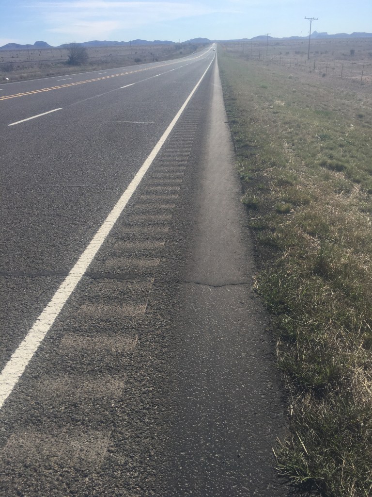 Next quick stop was the visitor center for Marfa lights. Closed of course (Covid19). We were delighted by the shoulder that we had, a smooth chip seal-less corridor. As we were climbing the pass we came upon the TDOT shoulder sweeper!! I had no idea highway depts do that?! Or is it only in Texas?