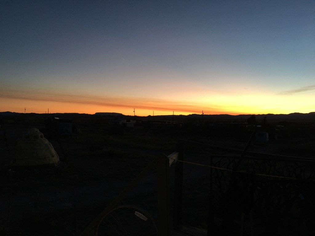 We had the most casual start today. About 10:45am after fixing Curt’s “surprise wake up to ride” flat tire and cruising some side streets in Marfa.
