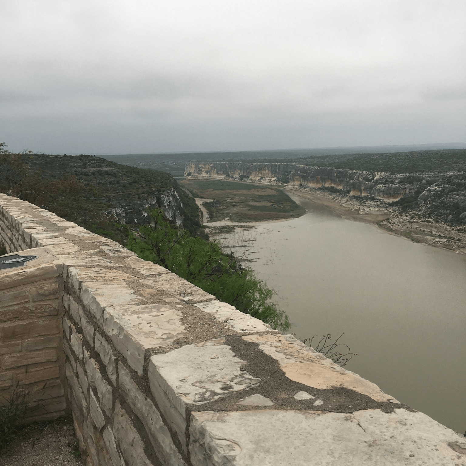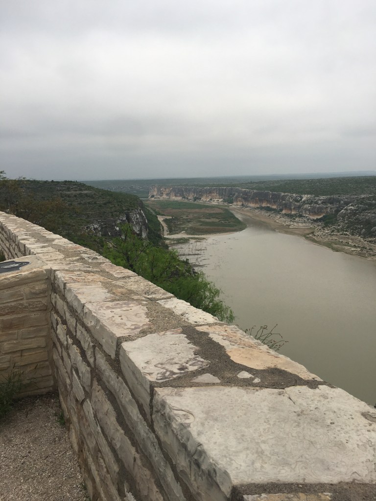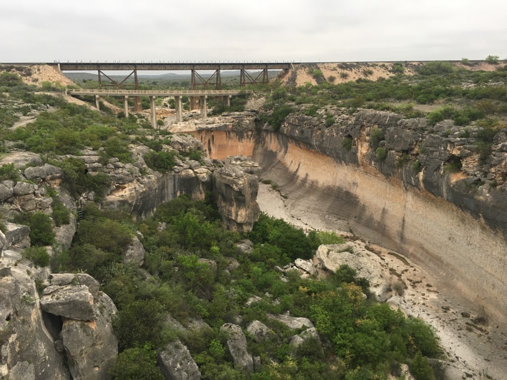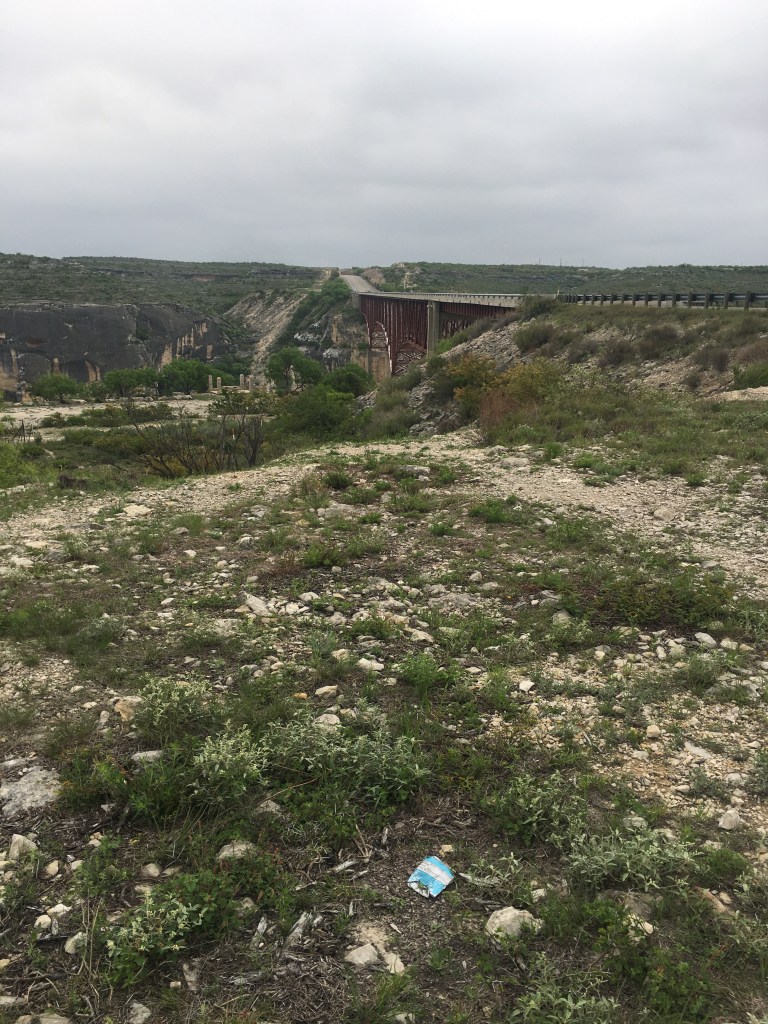 Today was another beautiful day. Humid but cloudy so it was comfortable all morning. Same rough road and shoulder almost all the way except maybe the last 8 miles. The wind was not very strong today… thankfully. We rode the hilly roller coaster terrain all morning. Crossed the Pecos River at the mouth with the Rio Grande. Really beautiful country and the range land is so green right now. Perfect time of year to be here.