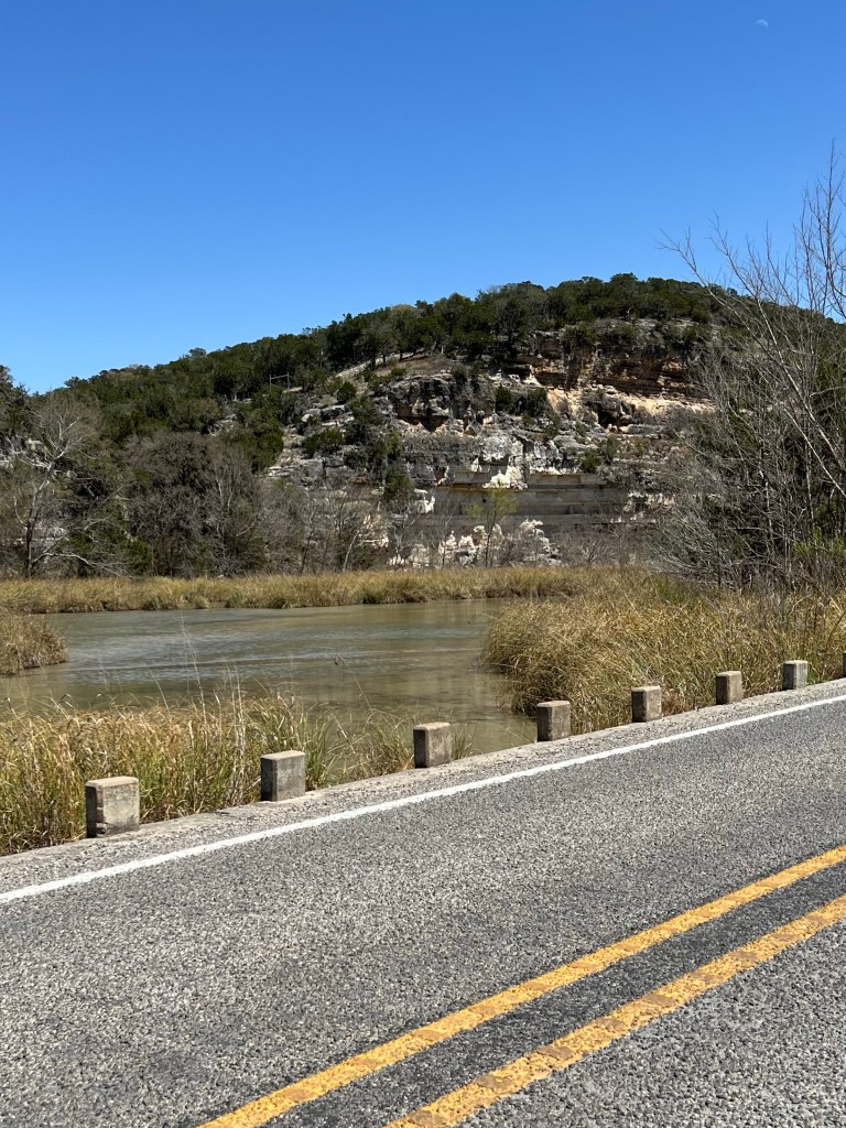 The Guadalupe River is absolutely a beautiful Texas summer getaway place. We followed the river several miles. There were simple cabins and very elaborate homes and properties as well. If you own something here you should like to fish and kayak along the lazy river. Quiet now but I bet in the summer it’s hopping. The closest community is called Hunt, TX.