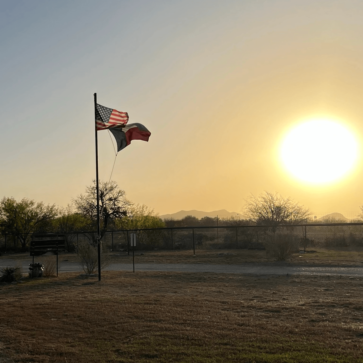 Out of camp by 8am (usually we’re closer to 9). Expecting red flag winds today. 20mph with gusts to 40! And it sure felt like it right out of our camp. The first 8 mi were straight up right into the wind or complete sidewind. Fortunately the traffic was very, very light. Texans must be the most considerate drivers I’ve ever experienced. They slow down and go way around. (Of course there’s always an exception but not today.)