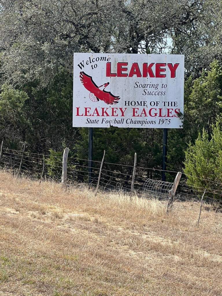 Leakey is the home town of our friend from 2020 Pastor/Coach Ray Miller. He let us stay in his driveway patio are in Langtry, TX in 2020. We were hoping to look him up in Leakey but “Peter” told us he was in Langtry. Sorry to have missed him. See blog post Day 26 from 2020. There’s photo of Ray and our patio camp.