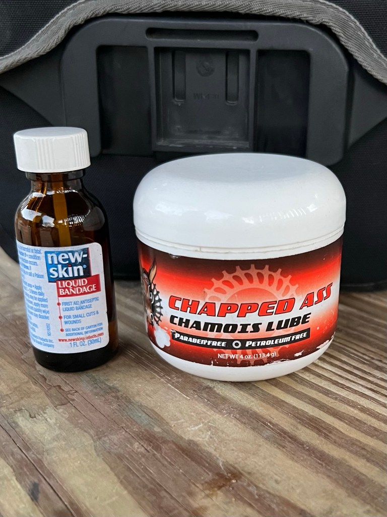 On a side note. Not having any riding time in preseason there are a couple of important items one should never leave home without. It takes a few weeks to literally get calluses on your sits bones. Until then some kind of chamois butter makes everything “down there” happier. Don’t forget to reapply at lunchtime or often. And, alas if you get a “hot spot” there’s First Aid Liquid Bandage you can paint on the “affected” spot! Details, details…. keeps every rider going day in and day out.