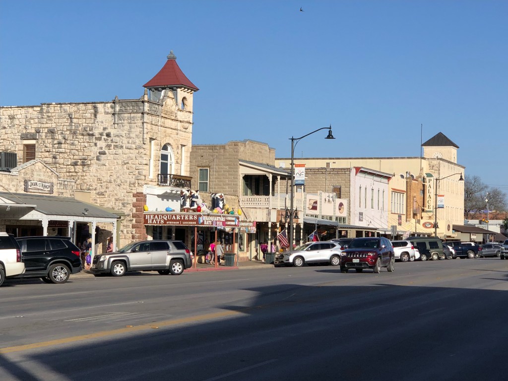 The small town of Fredericksburg is a tourist haven in hill country. It has a long Main St with interesting businesses, German restaurants, music, a bachelorette party destination. Great architecture. It would be fun to spend another day but we’ve got places to go. Camped at the Lady Bird Johnson city RV park. Great showers…simple pleasures. Primitive camping but the bathroom is really close! $10/tent. Cheap. Our neighbor tent guy literally lives in his truck. It’s like a hoarders house. And directly across from him is a gigantic gGreyhound bus size RV and then there’s us…on bicycles. Got to love that we’re all here together in this city park. Took an Uber into town for laundry and dinner. Life is good my friends😊