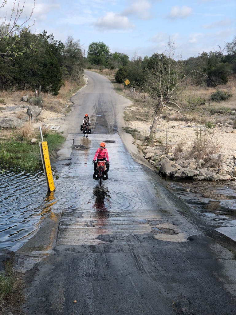 Needless to say I sprung up early 6am and the group got rolling. We had a nice early start for the 60 miles into downtown Austin. With a quartering tailwind we were off through the ample rolling hills. Beautiful morning. Shortly after we had water on the road at a creek crossing we met up with a couple local (Austin) guys that had been bike camping at a state park. Had a super nice chat and then they directed us to the Olive Bistro. Good food. We shared a lunch table and met each other a little better. Super nice guys…Spencer and Tom!