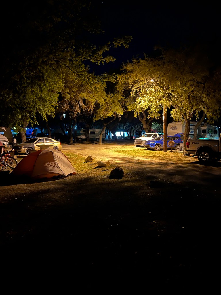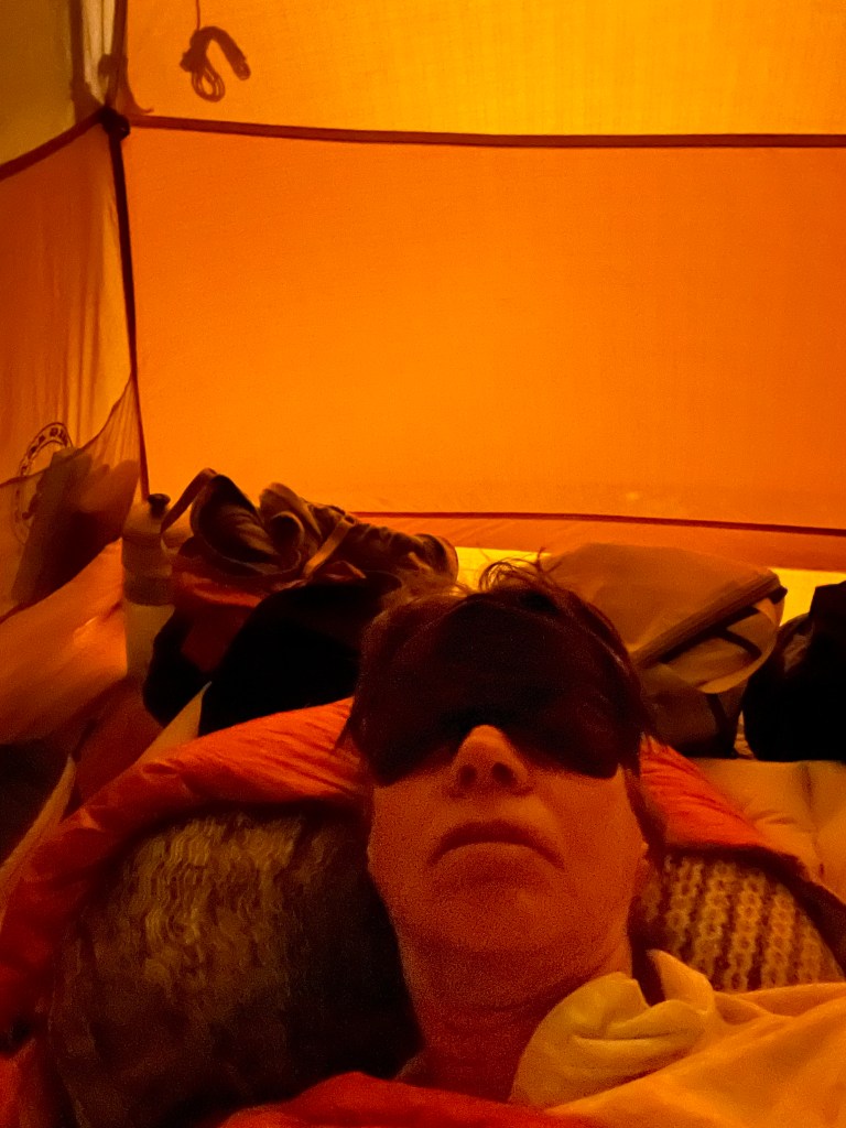 Where do I begin? It seems my day really started at sunset last night. You’d think someday when I set up camp I would pay closer attention to where the yard lights are? Last night soon after sunset the yard light comes on at the Roadrunner RV Park. Our tent is aglow! Because I seem to select these less than ideal locations, I have invested in an eye mask. Situation solved. But then it gets worse…my air mattress has a slow leak. I thought it was the cold temps the previous 2 nights but it wasn’t. I was sleeping on the hard, sunbaked tent site on very little suspension. Ugh!