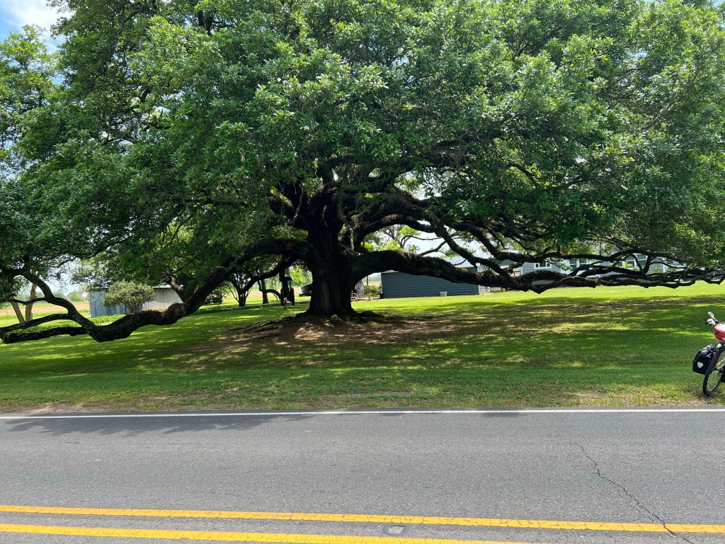We went through another really pretty little town called Cottonport. It had a bayou running through it with very nice homes lining the opposite side of the waterway. Sorry I didn’t stop to photograph now. Shortly after Cottonport we came across the most magnificent Live Oak Tree I have ever seen! It was huge and majestic. Simply grand. I took pictures but it didn’t fit in one frame. I’ll post all the options. I think that was my top thrill of the day😊