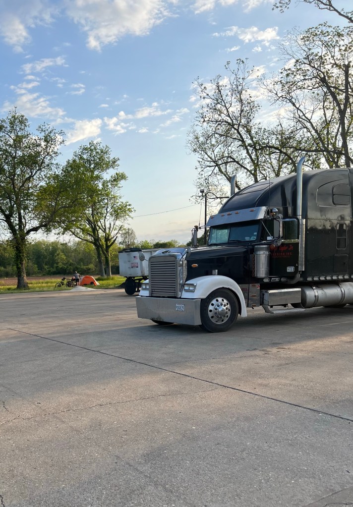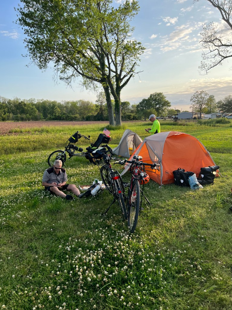 Our ACA guide never mentioned a motel….now we understood why. They said the best place to camp was in the back of the Truck Stop parking lot. So here we are in the back of the lot…it’s grassy, fairly quiet, lots of parking lot lights but we feel secure here. You can’t see us behind the parked trucks. And….I had my first Truck Stop Shower $6. All’s well for tonight. Todays hard ride is history. Tomorrow gets us to Baton Rouge. We have lots of options. Big mileage day but lighter wind speeds.