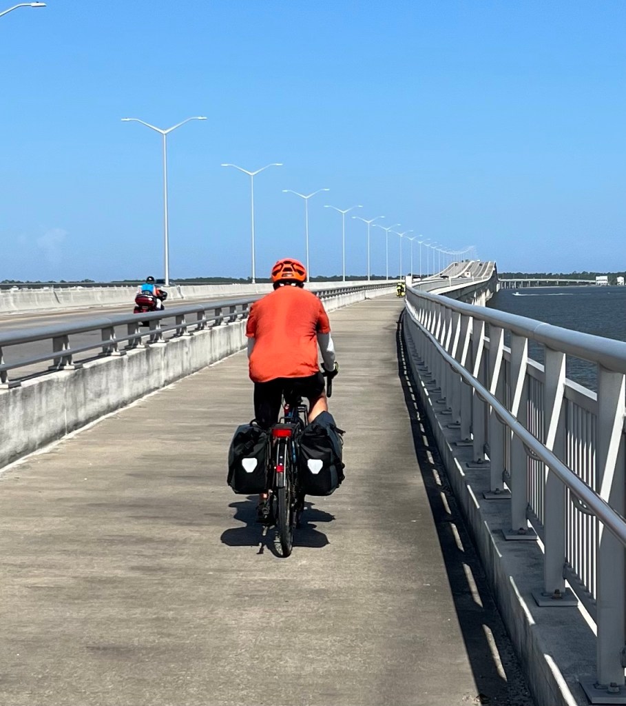 Now to our traveling third partner, Curtis. It’s never easy to be the “third”. Jim and I communicate so easily after 40+ years together. We think alike, eat alike….you get it. Anyway, Curt (bless his heart), is the most easy-going, calm, mild-mannered friend you could include in our twosome. We all know each other’s idiosyncrasies now, there aren’t really any secrets to our daily lives, needs or functions (haha). But I want to congratulate Curtis on riding his unique recumbent bicycle across America! I know at the beginning in California, he was unsure of his decision to use that style of bike. All the climbing right out of San Diego and in CA was “no joke”. It was hard and the balance ratio of his gear wasn’t helping him climb. But over time (2 yrs), he reconfigured his gear arrangement and he also had more experience on the bike. He was cruising with happy shoulders and happy butt for Part 2. Plus…He got all the attention!! The biggest drawback to his bike is the length. It doesn’t always fit easily, but we managed to fit 3 bikes in most hotel rooms if we had no other options. I believe Curt is going to add to the blog with his thoughts on recumbent riding across America. Just in case some of you think maybe you would like to do some bicycle touring, if you were more comfortable😊