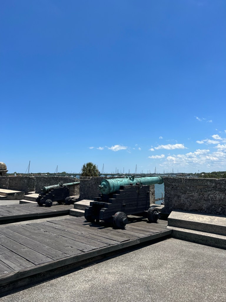 We rode about 5 miles back over the Intracoastal waterway to our final destination…St Augustine. We have a nice AirBnB home close to downtown for 3 days. St Augustine is full of Spanish, French and British history. It is the oldest city in the US. The architecture is beautiful. There’s an old fort there since 1600’s to battle the British and pirates. The downtown itself is teeming with tourists (it’s Mothers Day), tour trolleys, walking tours, horses and carriage tours. You get the picture. Streets are narrow and shops and restaurants are plentiful. Lots of shop gawking and people watching.