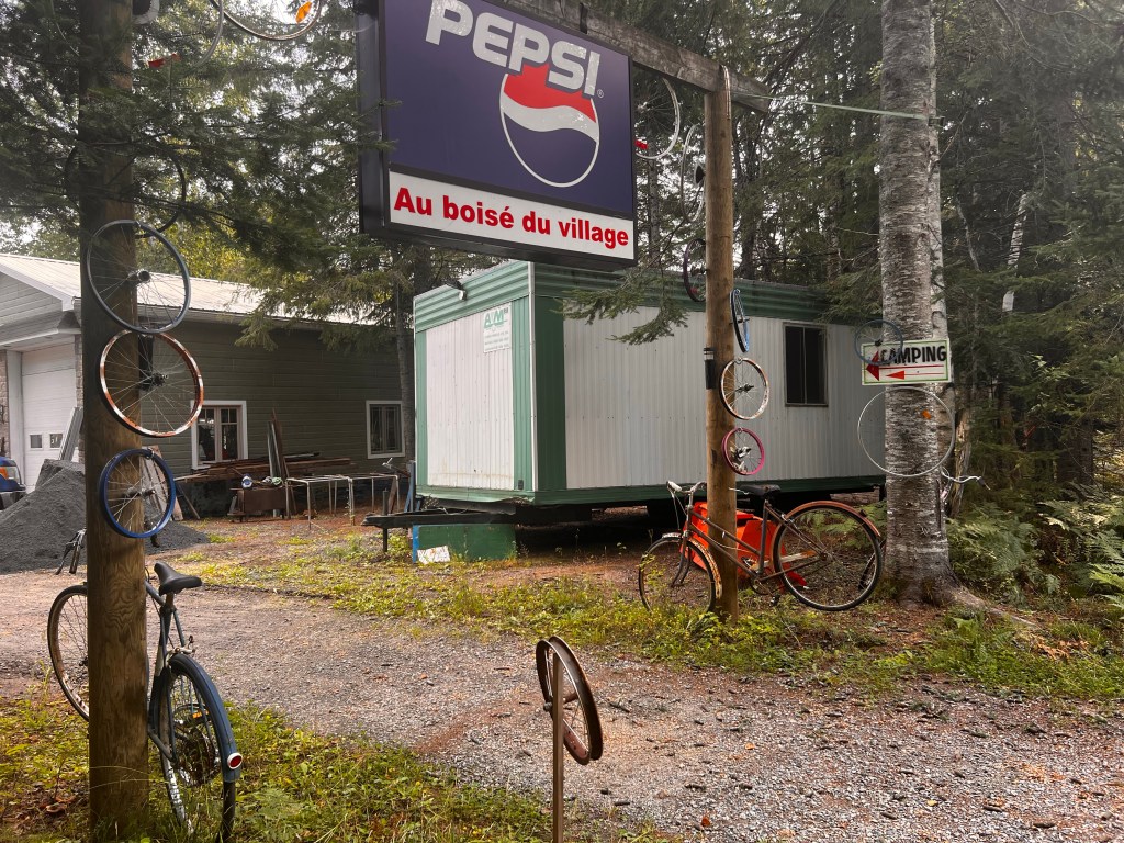 Looking forward to tomorrow when we will checkout the famous ski resort Mont Tremblanc and the village below it. We have some climbing to do… 12 km at 3% grade! And btw… we had to hike our bikes back out of that campground this morning too… this time it was a gravel road out of the campground.