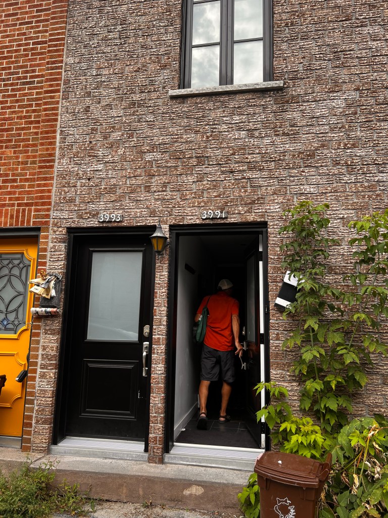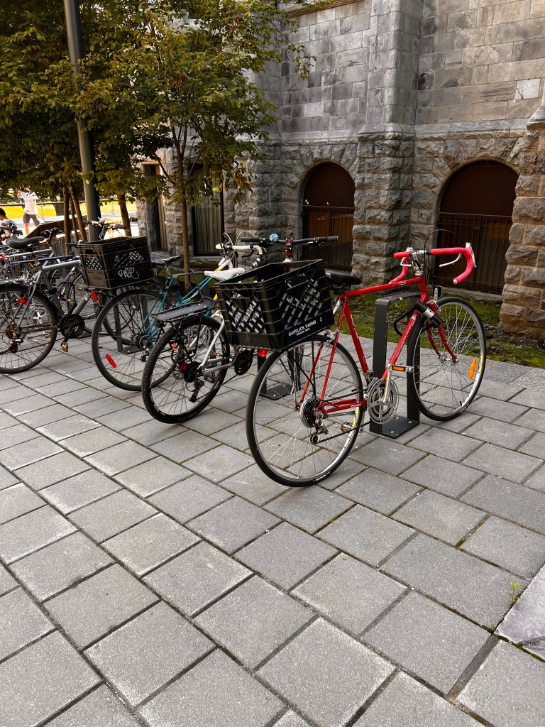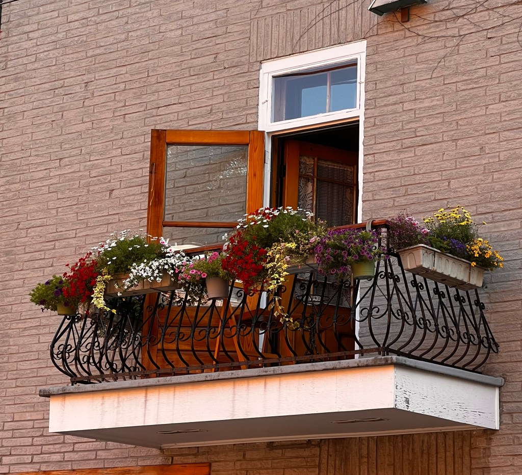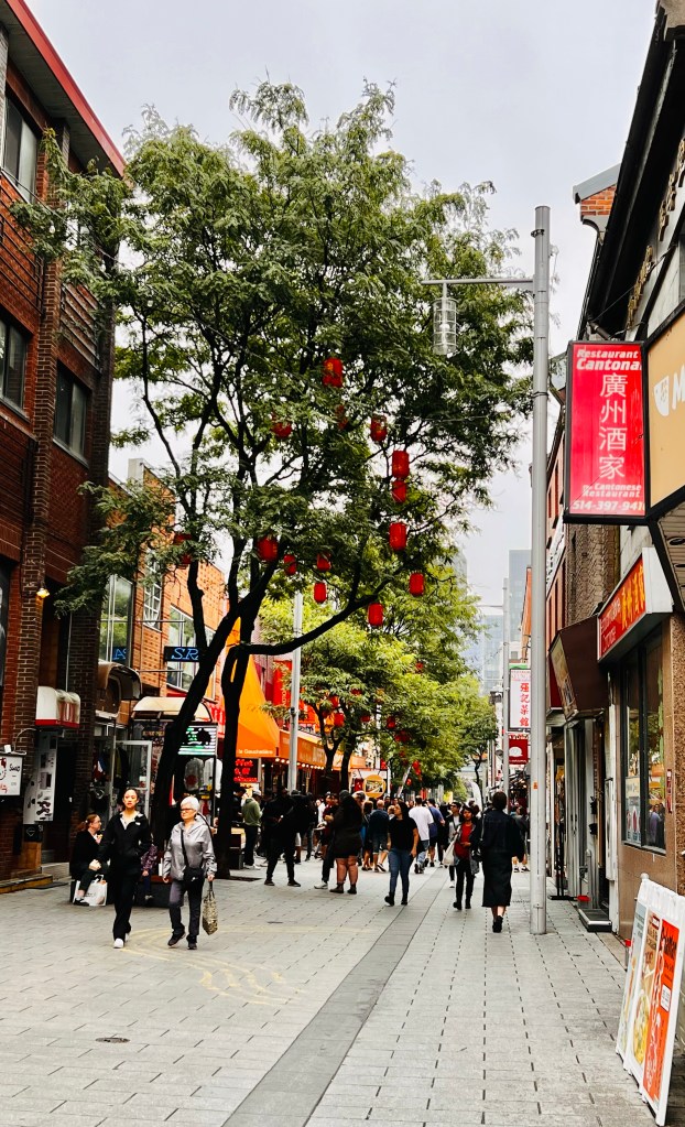 Then we took about a 7 mile walk to investigate some of the neighborhoods we passed yesterday on bus. It was a cooler cloudy day. We had rain last night but it let up for today. More rain is expected tomorrow. We wandered down to the riverfront, through the Old Montreal street… full of tourist souvenir shops and then through Chinatown. There is an underground area of Montreal that turns out to be a mall. Quick trip in and out of there! Walked through the Gay Village on the way back home. I’m guessing that is more interesting later in the day. I think my favorite part was the little parks as we walked up the streets and the homes with their staircases on the walk back!