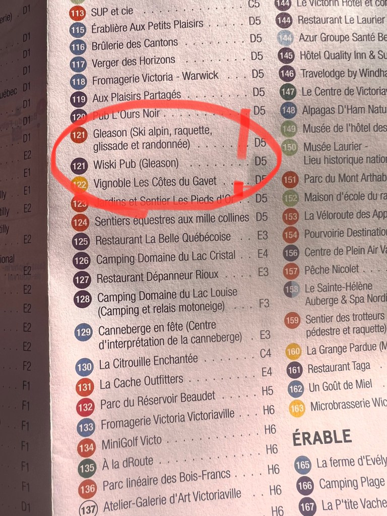 Back on the trail we road past another small ski area in the distance. You can see the chalet and chair lift. The name caught my eye. Gleason ski glissade. As if that wasn’t enough we found out their is a Wiski Pub in Gleason too. I have cousins whose last name is Gleason!! This one’s for you Jim Gleason😊