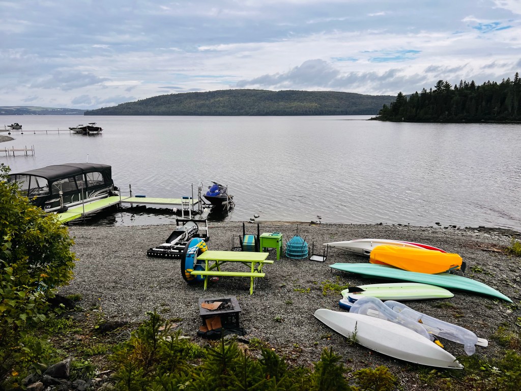 The trail today was the crushed gravel we’ve become accustomed to. We followed the Temiscouata Lake shoreline for a couple hours. It was dotted with homes/country houses on our right and to our left their stairways to the boat docks. The lake is really long, about 40 km.