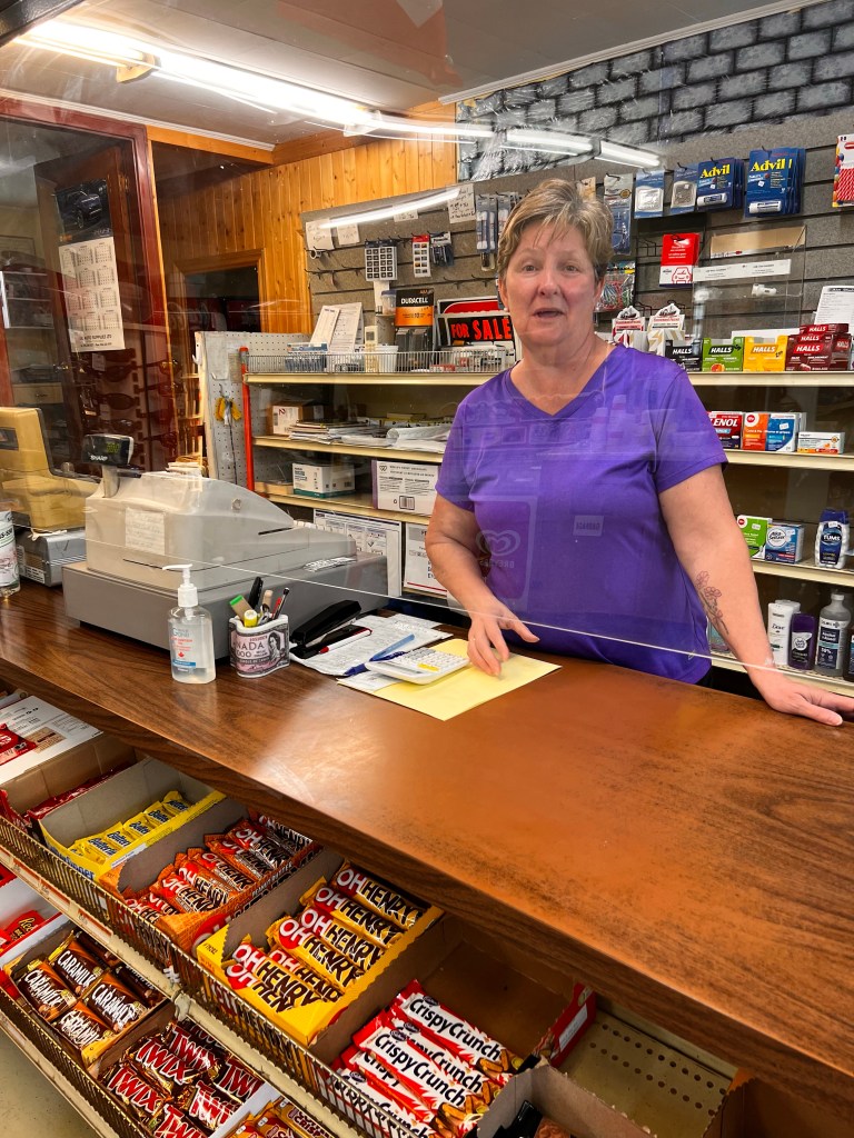 Came to our first little rest stop at an Irving’s gas station in Meductic. Met Lisa the clerk. She loves her job because she meets people from everywhere. She said she got invited to Round Top, Texas yesterday. Amazing thing is.. we rode through Round Top last year and I distinctly remember it. It’s the place with the giant flea market festival… they sell all that chicken memorabilia you see in peoples yards! She also filled us in on the area and the side road with a swinging bridge we’d be taking from there.