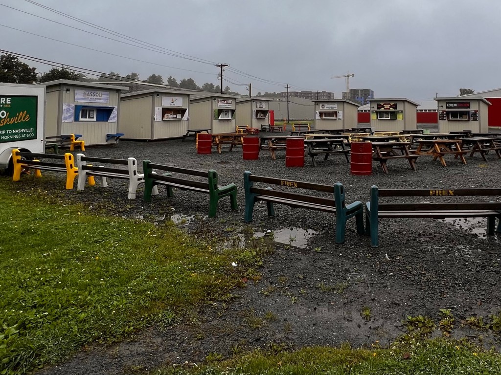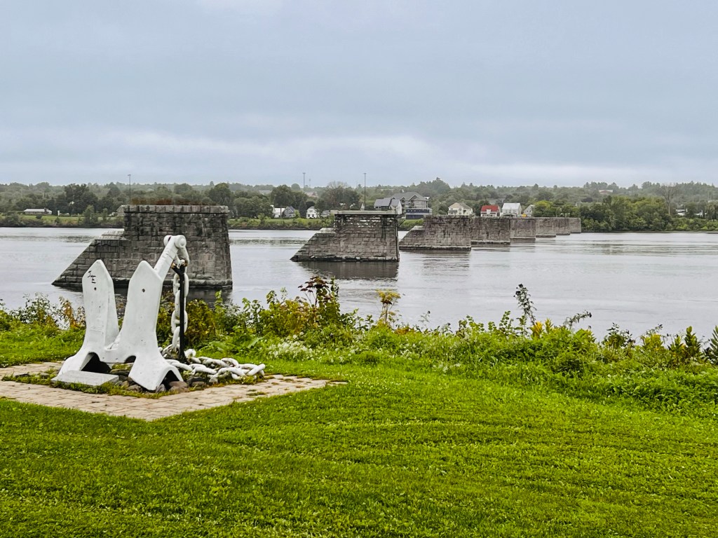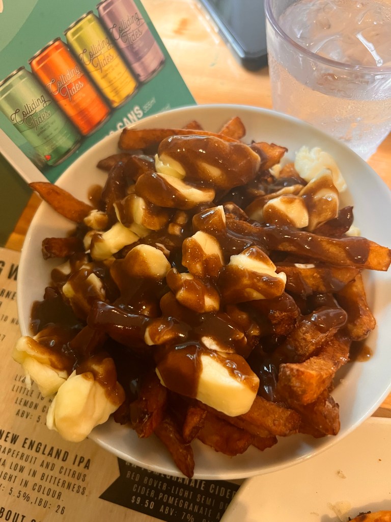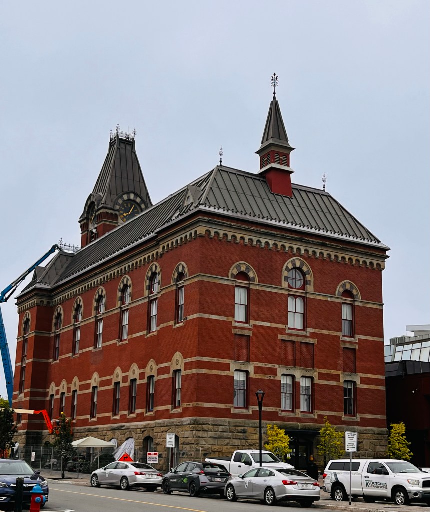 So today we poked around downtown Fredericton. After we checked with the bus guy we walked downtown. It’s right along the St John River of course. Plenty of old government buildings. Went to a local brewery for lunch. Had my first poutine! Hearty rainy day type of food. Beer was good! While checking out the town the rain went from slight drizzle to downpour. Always prepared now with rain jackets.