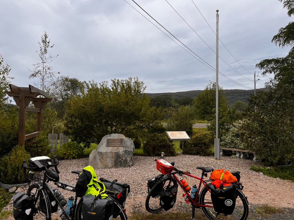 We spent the first 42 km of our 70 km day in what I called “Mostly crawling Upsy and Sprinting Downsy”. I guess this is good to get me prepared for Cabot Trail. I’m climbing in my easiest of spinning gears very slowly to the top but still spinning…(fortunately), to descend very, very quickly down within 10-20 seconds! Over and over and over for 42 km. (25 mi). We did have to walk one very short and steep climb out of Bear River.