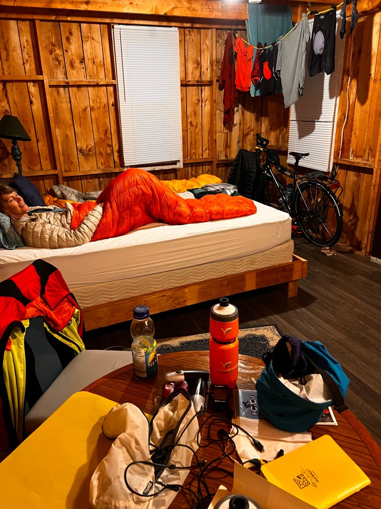 We’re at a campground tonight in Bridgetown. Have a little cabin because… guess what?… yep, it’s going to rain again all night! It’s nothing special but will be dry when we wake up in the morning. Easier to cook breakfast and pack up! It’s Monday and besides Tim Horton’s the only food open is a takeout pizza joint. It’s a quick 2 minute ride so that’s what’s for dinner tonight.