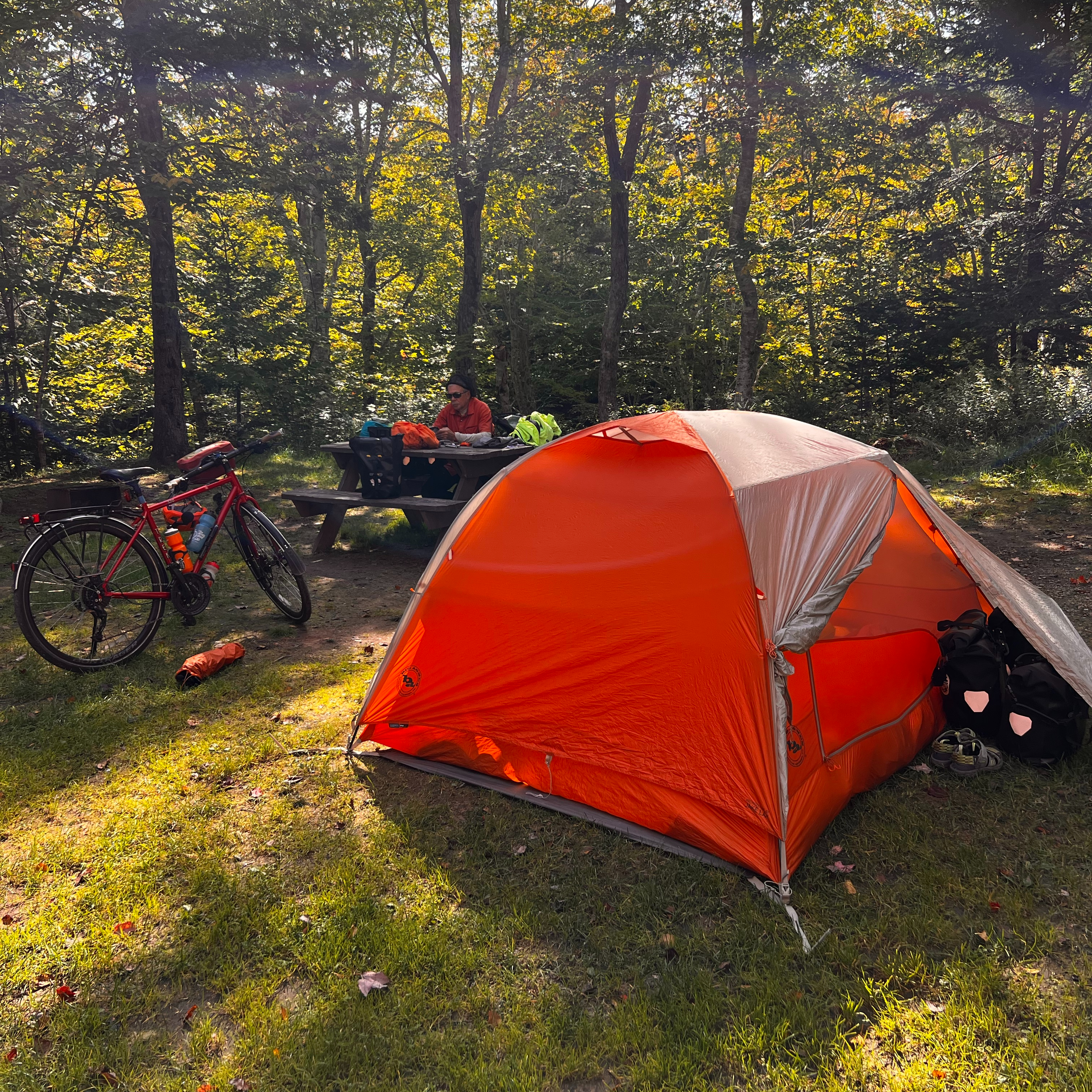So here we are at a campground. It is the most beautiful warm, sunny October day. The leaves are beautiful and I should be savoring the moment. That is very difficult when your plans are wrecked. We still have some food so we are good for tonight’s meal. It will all come together… I hope.