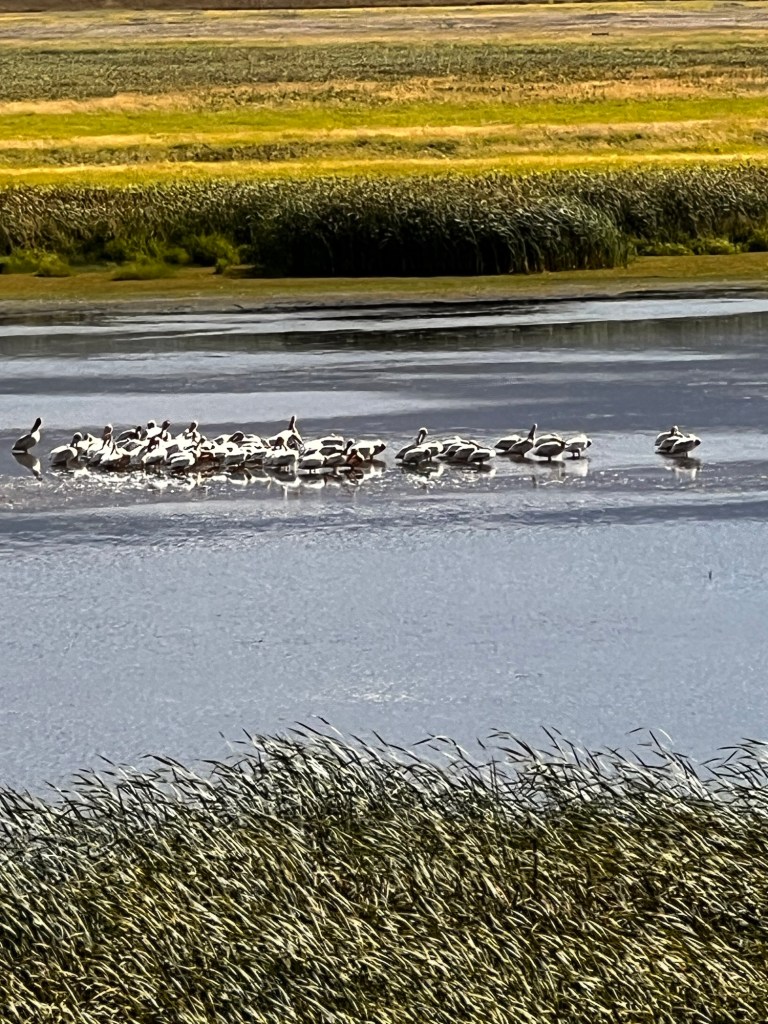This morning we started traveling through the Kootenai Wildlife Refuge. Today it was predominantly geese but I did spot a group of pelicans. The road was paved for several miles, then decent gravel, then paved again until we crossed the river at Copeland.