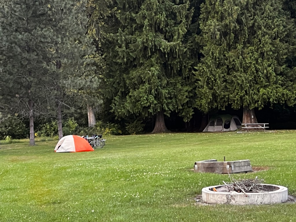 It was more of a grind due to the wind. But we made it! Tomorrow we will close out our Selkirk Loop and roll into Sandpoint from the west. About 35 miles. Looking forward to a shorter day, less wind and some sunshine.