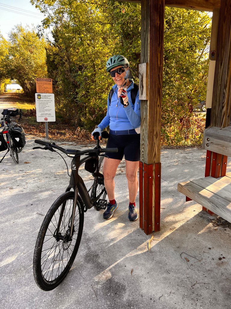 Today’s volunteer sag driver was me (Suzy). I drove to the trailhead start and range the starting bell to send them off. It was a sunny but cool morning. The day pleasantly warmed into the 70’s.