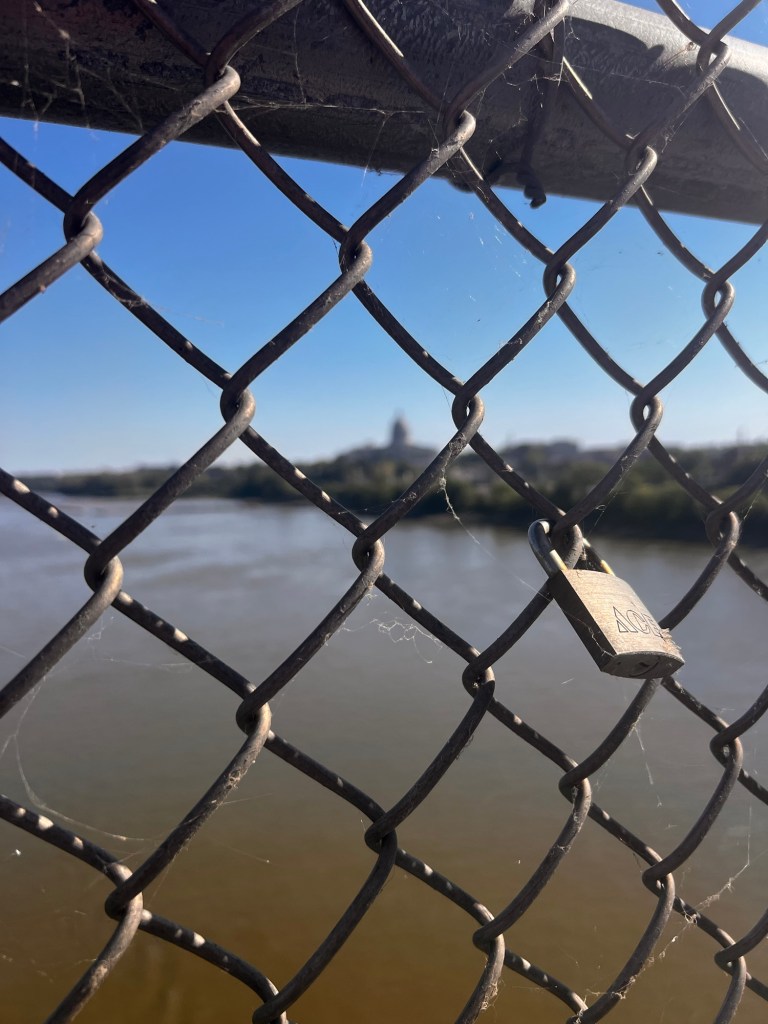 I also missed taking a photo of a paddling event that was finishing up at the riverfront park. Some beautiful downriver racing kayaks and canoes, but also some Grumman and Sawyer canoes. Another hobby that I used to have…. racing canoes. They had a headwind from Columbia to Jefferson City! Ugh