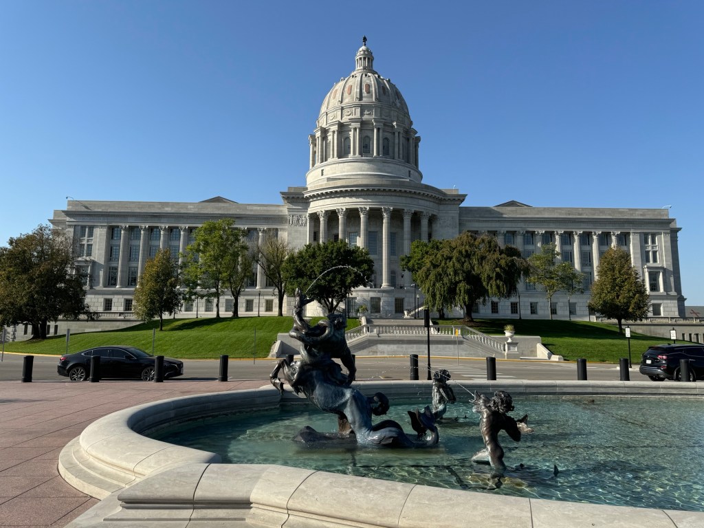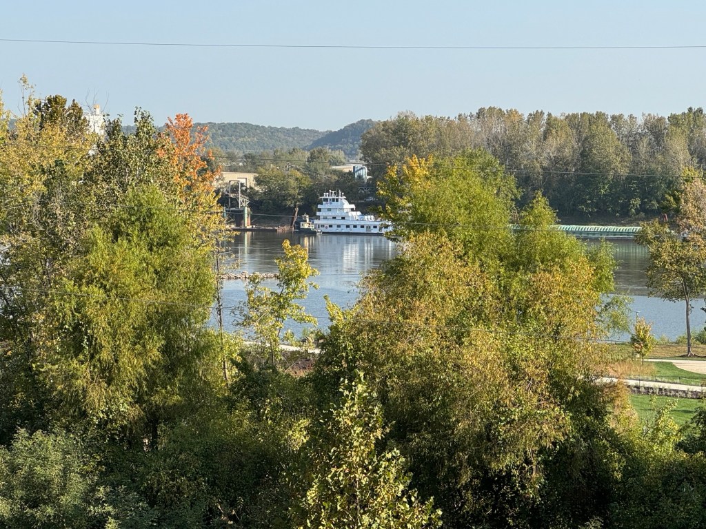Leaving Jefferson City this morning we took a closeup look at the Governor’s Mansion and the Capitol building. The Capitol overlooks the Missouri River. Beautiful setting.