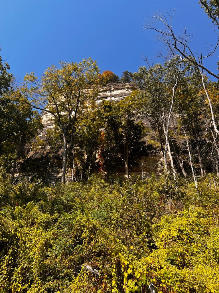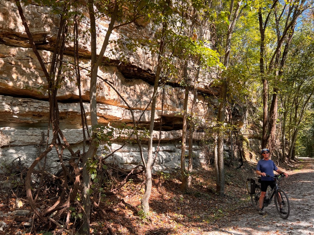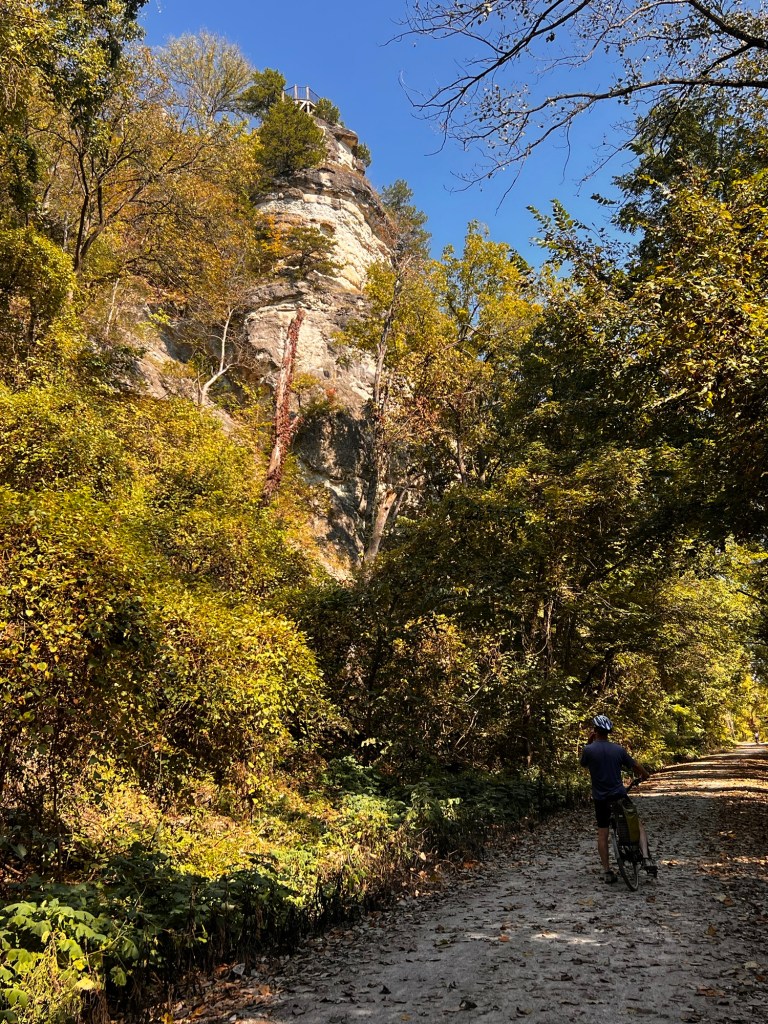 After lunch we got back into the bluffs and the river was close by on our right side. The leaves are quickly changing colors and it was a really pleasant easy roll for the next 10 miles. Bluffs and river on each side make a nice trail.