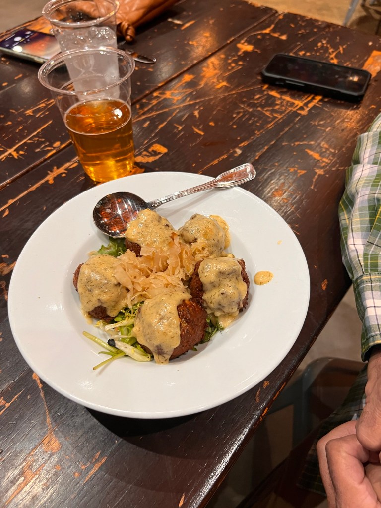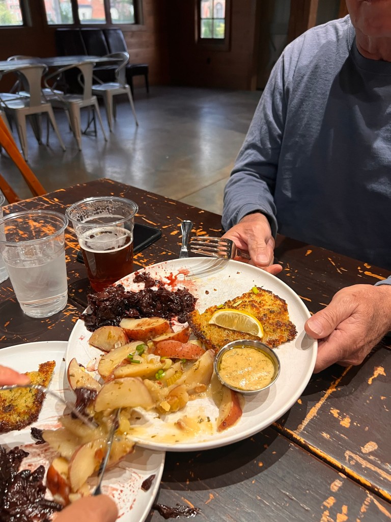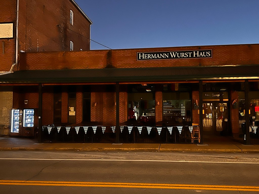 The whole group rallied for a German dinner tonight. Hermann is famous for its German food and we found a delicious restaurant. We had sausages, red cabbage, sauerkraut, frikkedeller (meatballs), potato pancakes and schnitzel. Everything was good!