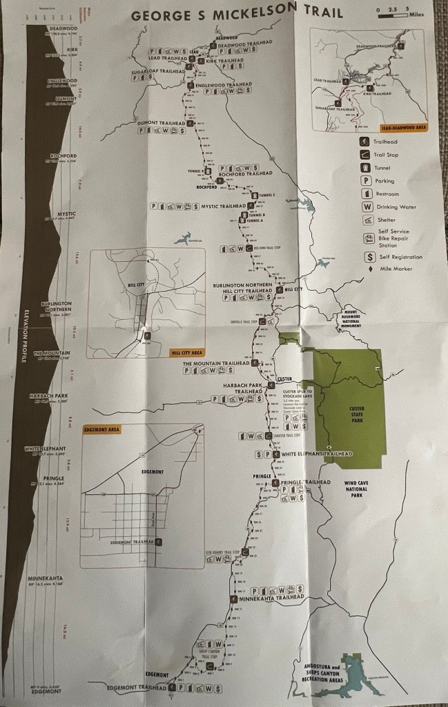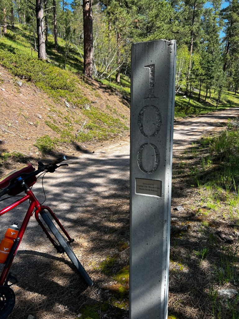 This stretch of the trail had several remnants of gold mines and actually a great view of the famous Homestake Mine in Lead, SD. It was in operation not so terribly long ago. Most of the mines closed pretty quickly. Not productive enough. Lots of little ghost towns and signs of towns that no longer exist. Mo