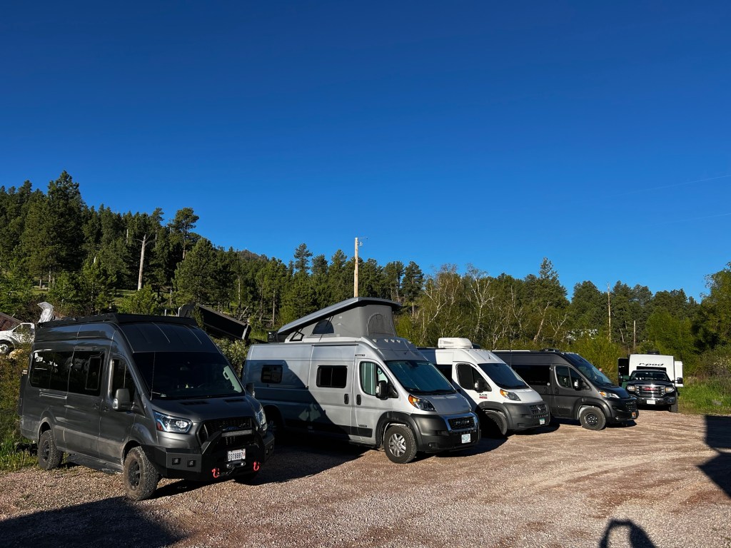 There were 5 of us spending the night. I think she said they could fit 7. The lineup was 4 vans and one camper. Behind our vans was a creek. It was quiet and dark. Perfect!
