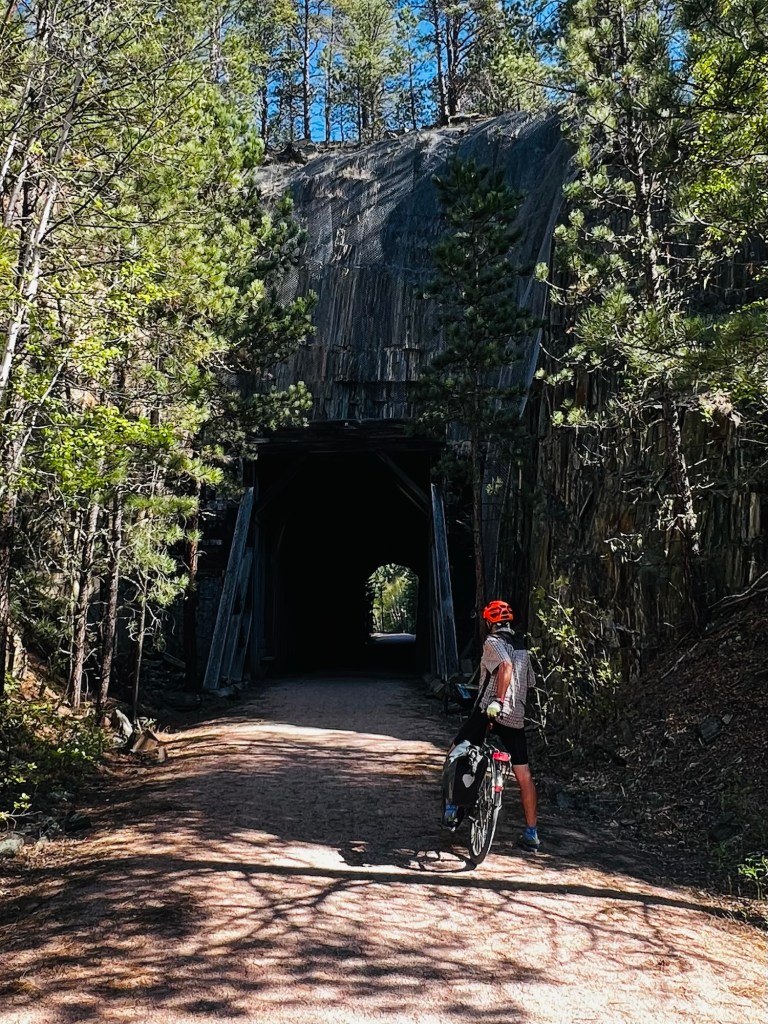 Quiet trailhead. Depart 8:45am. It’s going to be hot day. Our goal is 36 miles out and back to Dumont where we finished yesterday. It means 18 miles uphill then a hopefully fast return to Mystic. Then… if we have the gas to climb 7.5 miles toward Hill City and back. Thankfully we can play it by ear with the heat temps.