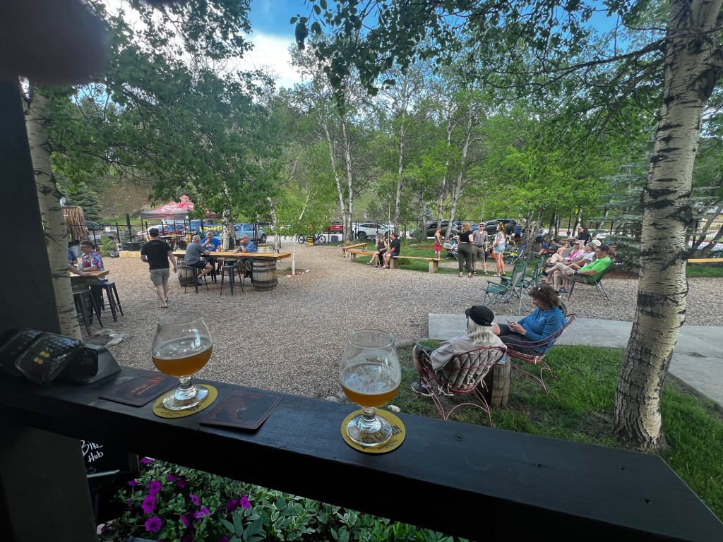 Our campsite tonight is on Forest Service land. Oreville Campground just south of Hill City. But first a stop at the Lost Cabin Brewery in Hill City. Caught the tail end of a band. Nice outdoor area right next to tomorrow’s trailhead.