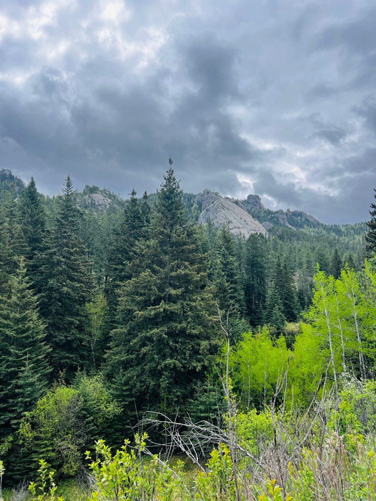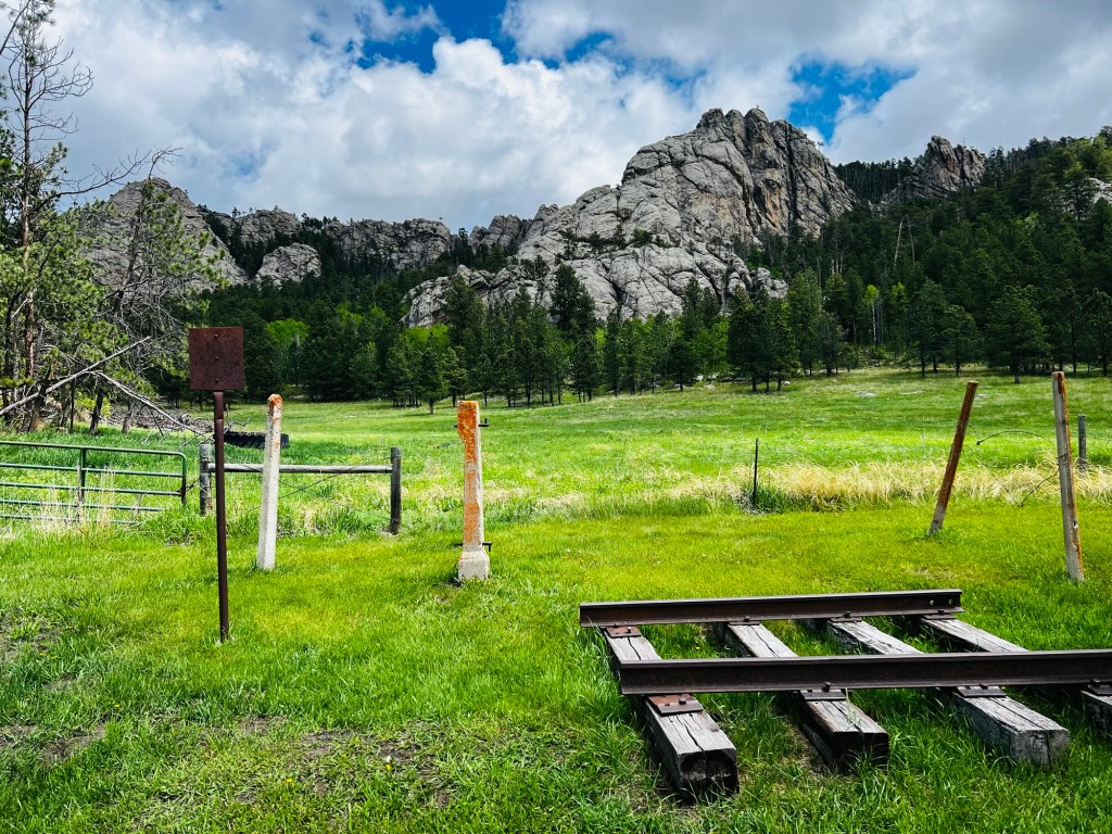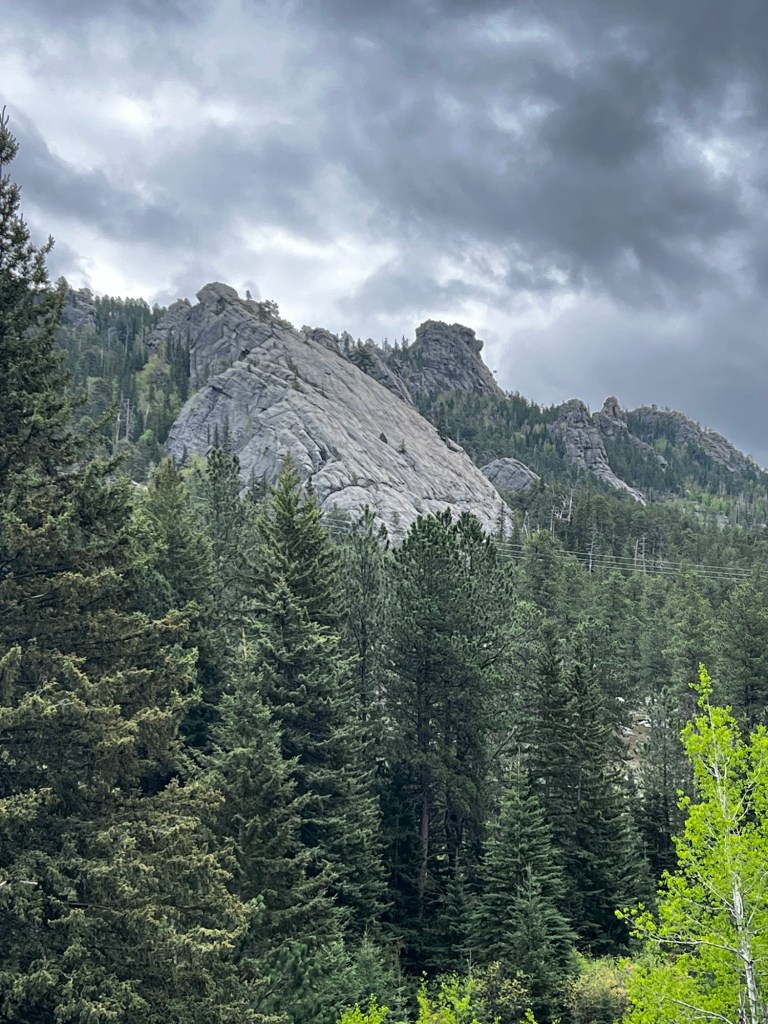 The downhill into Custer began after Crazy Horse and departed from the highway. It took us behind a hill through a valley and alongside spectacular granite rock walls. I have so many photos because I was loving all the rocks,
