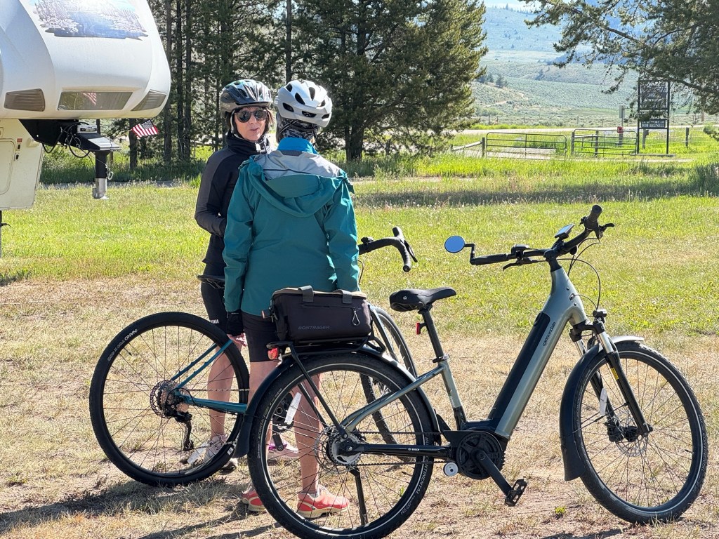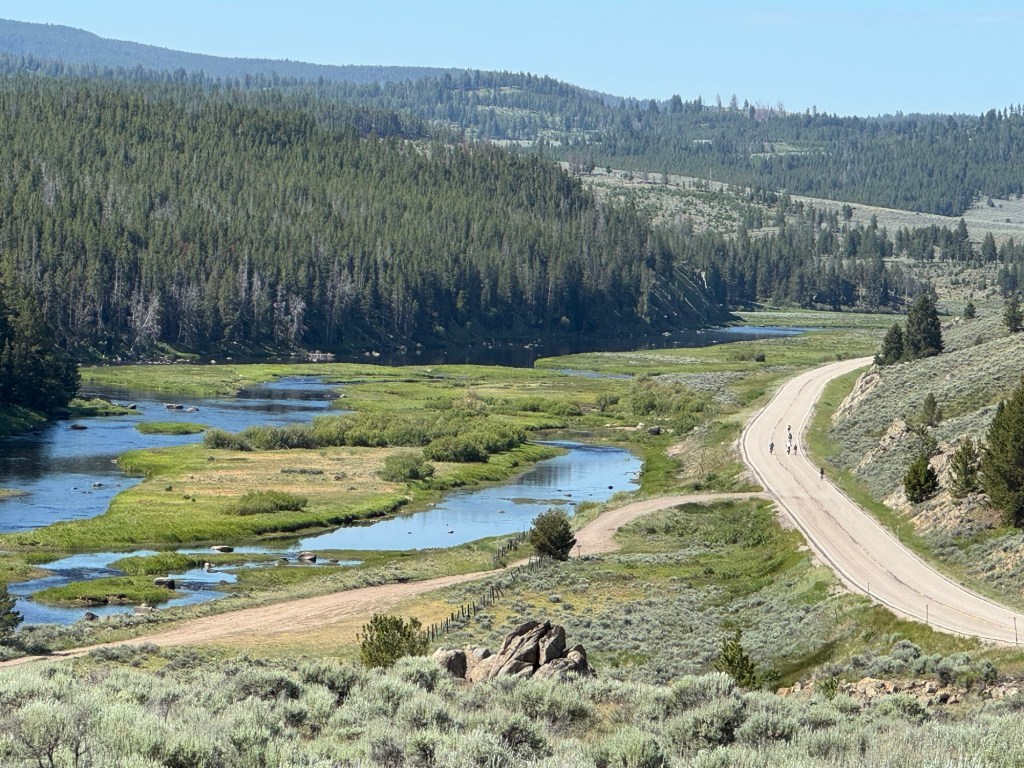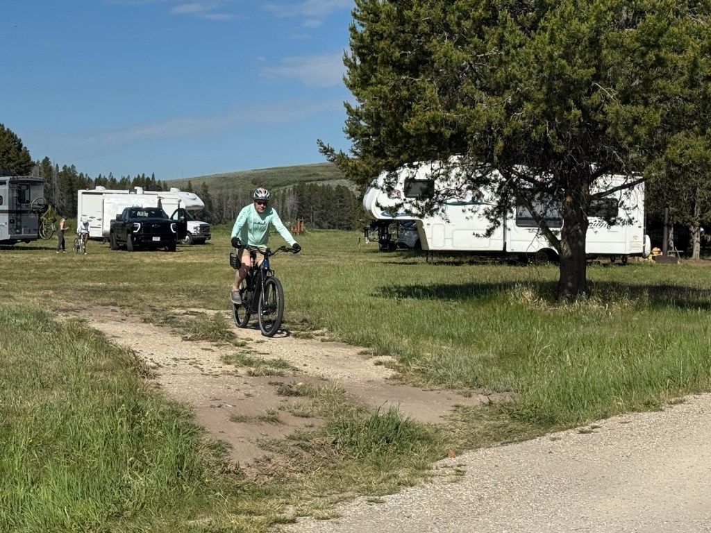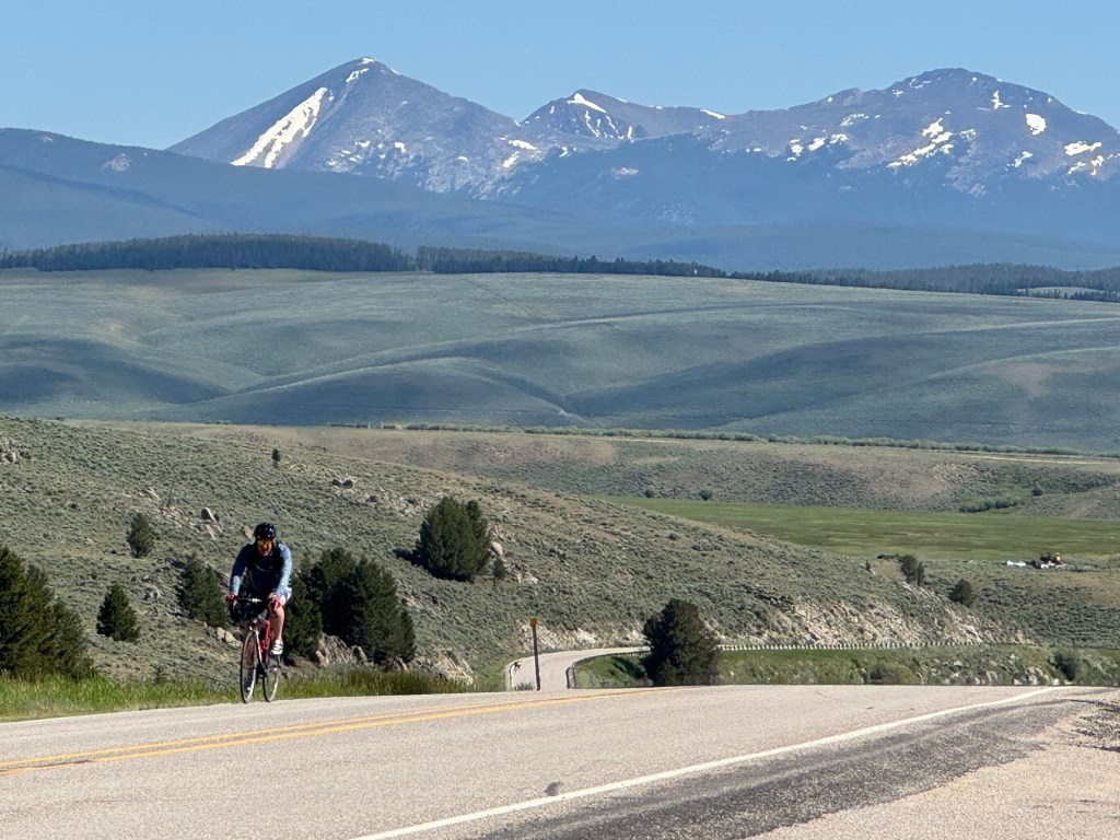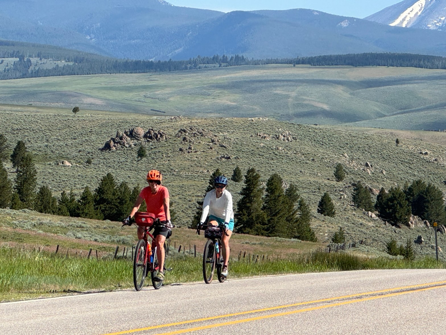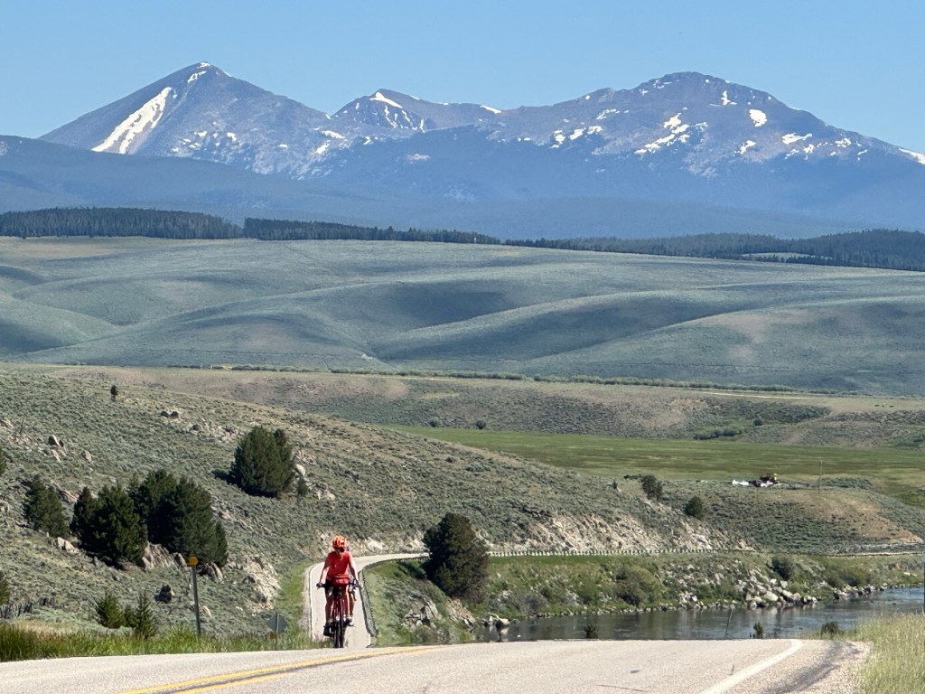 After lunch Jim and I switched riding/driving. At this point you climb out of the BigHole River valley, out of the sagebrush and into the mountains. The wind had picked up and with the elevation climbing the last 15 miles to the top were more challenging than the first stretch. At the summit it’s all downhill to the Lost Trail Hot Springs Campground.