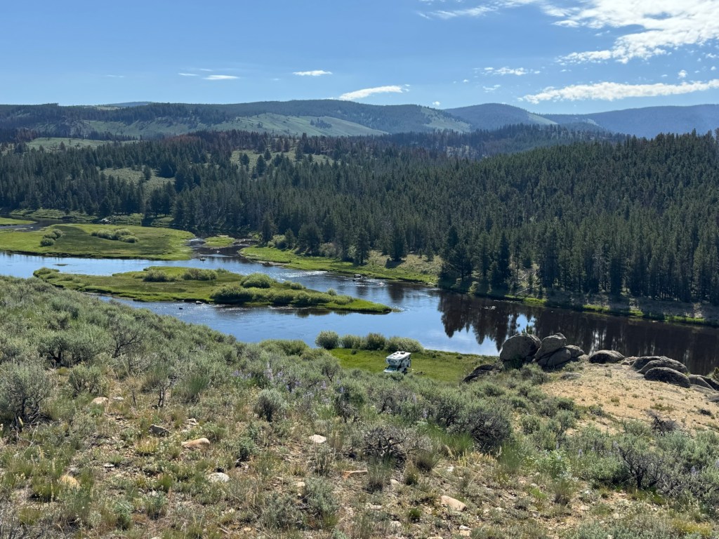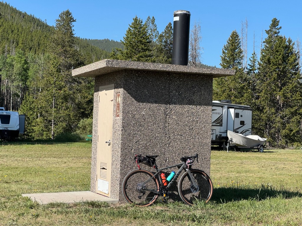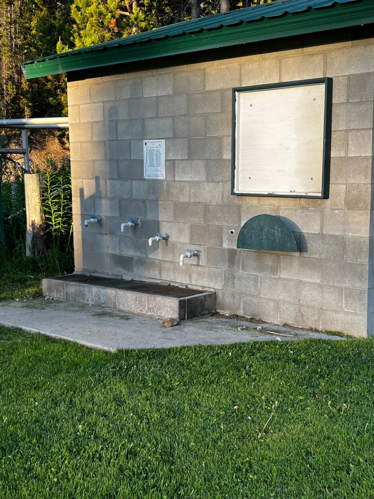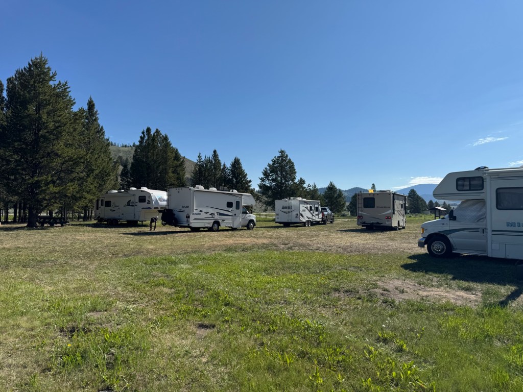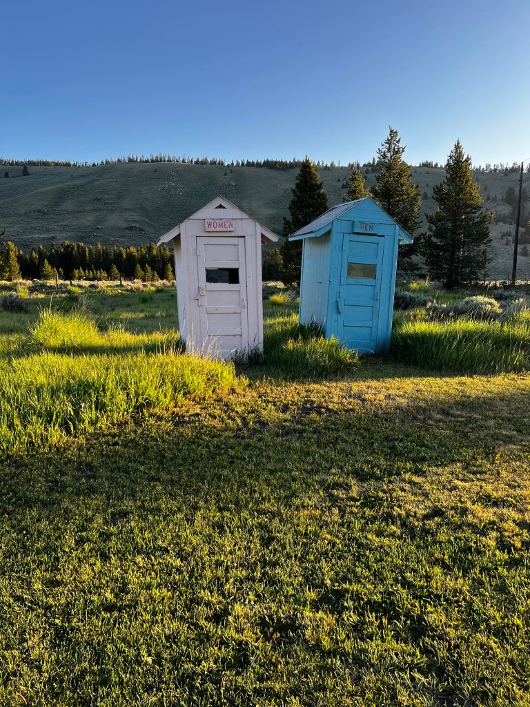 The Anaconda Sportsman’s campground on the Big Hole River (south of Wise River) is a no frills grassy campground. There are no hookups (water, electricity or sewer). They do have potable water to fill jugs that comes from a spring across the river. They are very kind and have remembered us every year. They have one vault toilet and I challenge you to find a more immaculately clean pit toilet, most pleasant vault toilet anywhere! A+ Anaconda!!