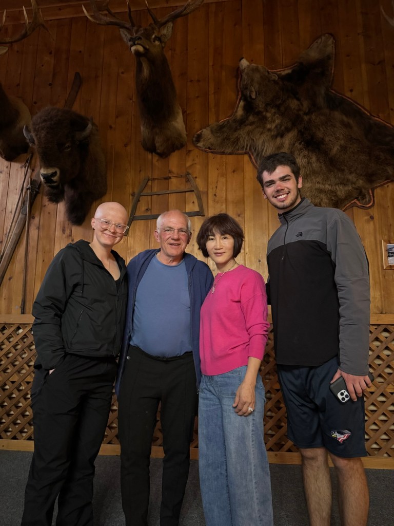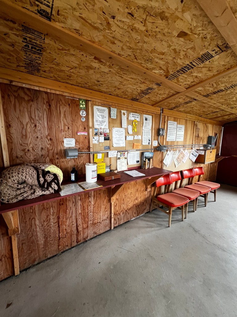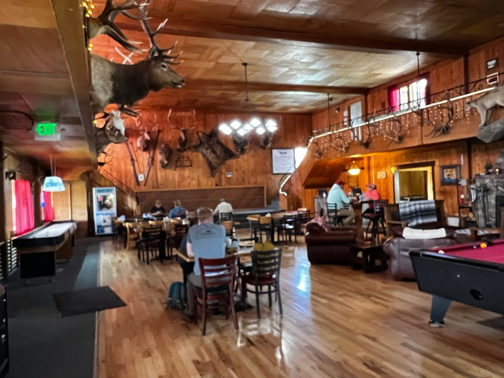 The lodge has a big great room with bar, cozy fireplace setting with couches and chairs and a nice restaurant. I said hello to them and they asked if anyone in our group had room for them to sleep on the floor (indoors). We didn’t in our van but I said I’d ask the rest of the group. Good fortune for them as Curt and Mia had a suite setup with a room extra living area! Perfect!