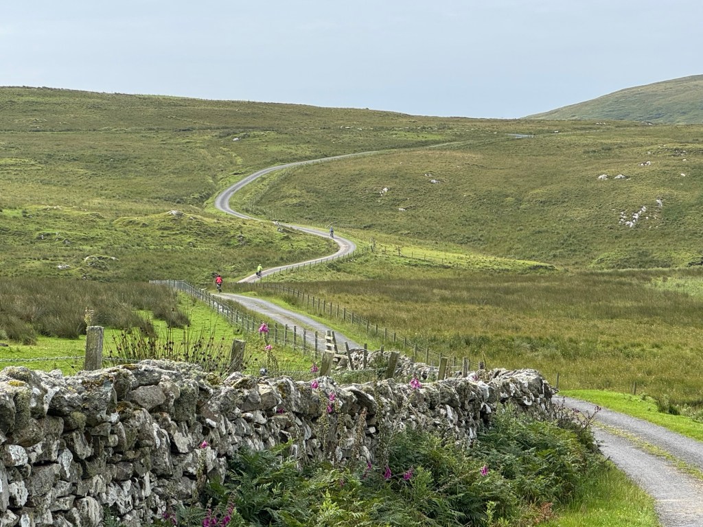 Started with steady easy climb with lots of open countryside with livestock farms of sheep and cows. Then we had a glimpse of the ocean coming down the other side.
