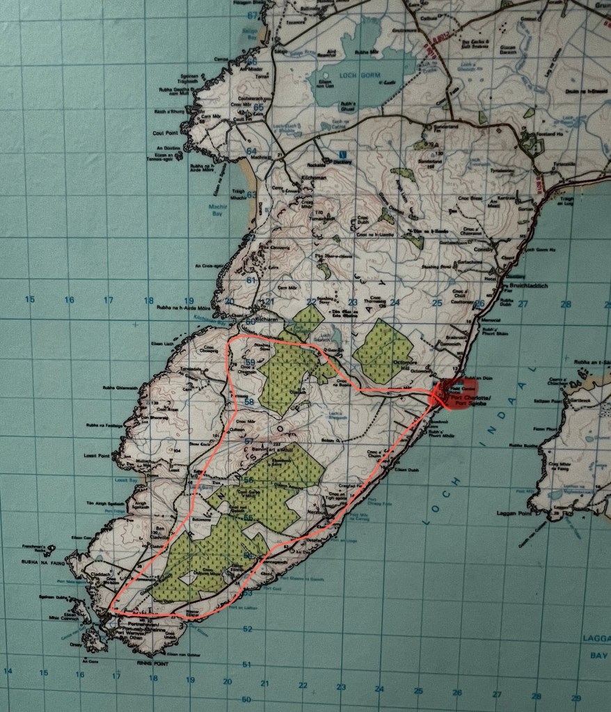 Port Charlotte to Portnahaven to Port Charlotte loop.