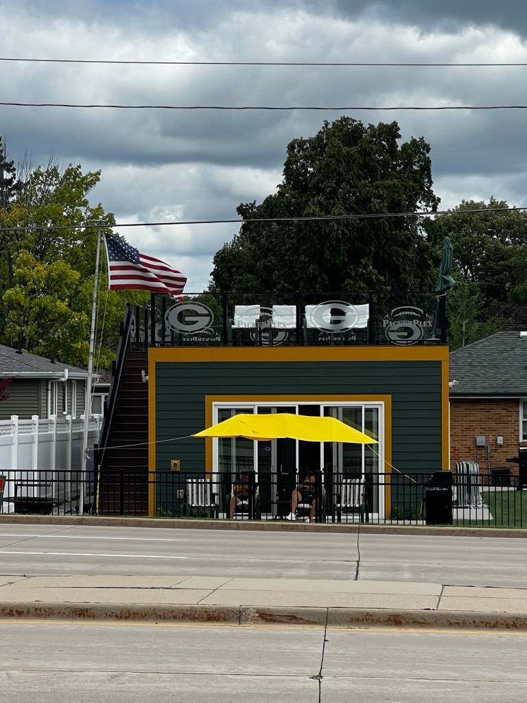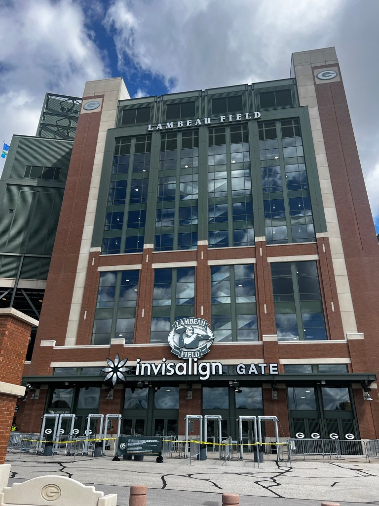 Erin took us on a walking tour around Lambeau Stadium and the Titletown area. This big stadium is parked in the middle of a typical Wisconsin neighborhood of little houses and quiet streets. Most of the little houses directly across from the stadium have added rooftop tailgates to their properties! It’s really ingenious and they are still cute little neighborhood houses. Adds to the fact that the Green Bay packers are owned publicly by the people! It’s worth a trip to come visit Lambeau any time of year. It’s special.