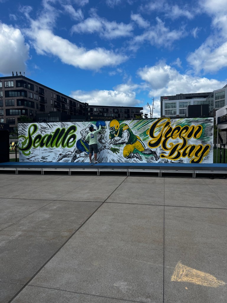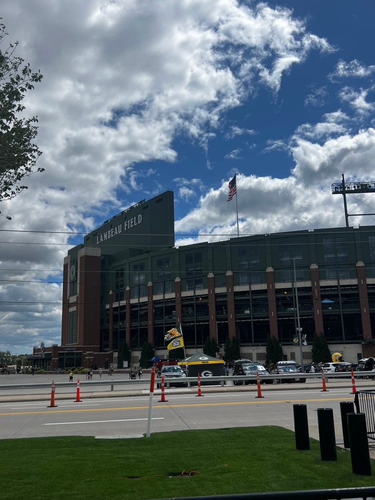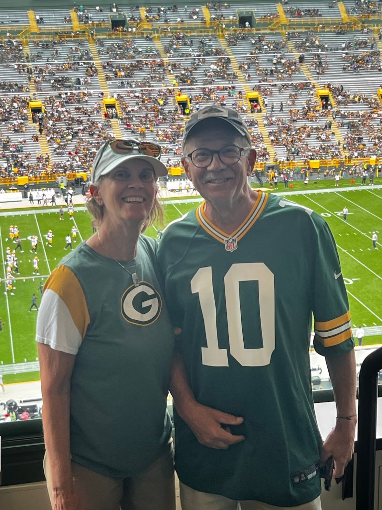 Green Bay was playing the Seattle Seahawks. Preseason means the starters aren’t playing. They play their rookies and second, third string guys.., so no one takes it very seriously but the stadium was nearly full. Green Bay won 20-7. We had fun being introduced to the whole Packer atmosphere! Erin and Ryan were such great hosts!