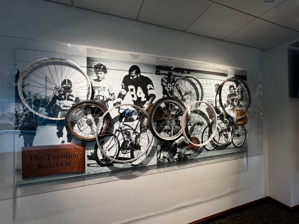 We had one more day of putting the fenders and front wheel on the bike. Erin and Ryan gave us a tour of downtown Green Bay, back to the stadium to the Packer shop and Hall of Fame. Then we hit a brewery and tour through the little village of Saumico.