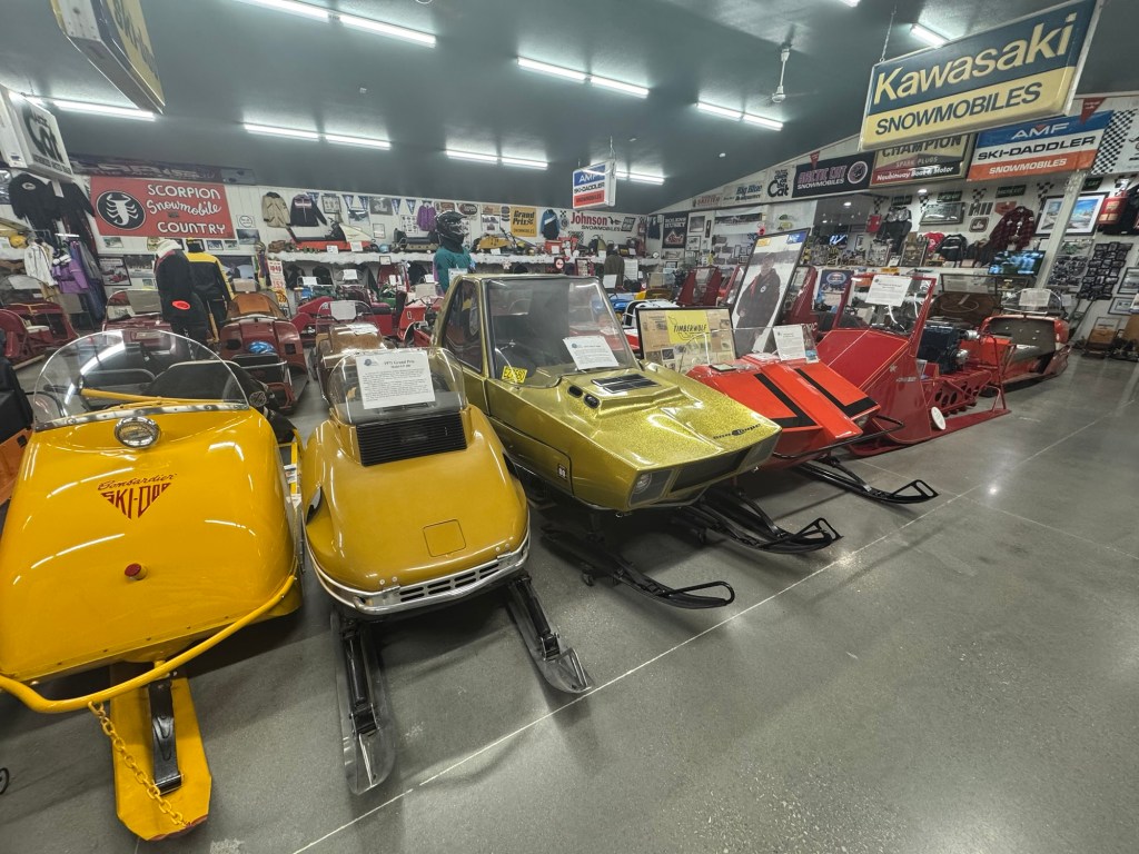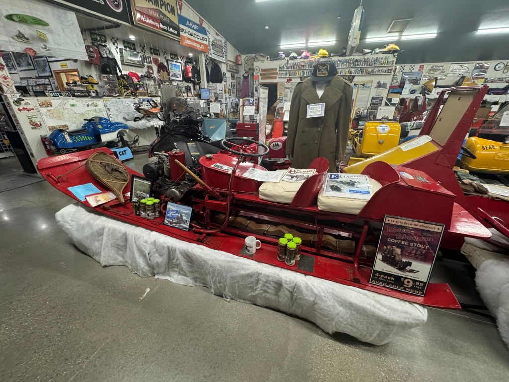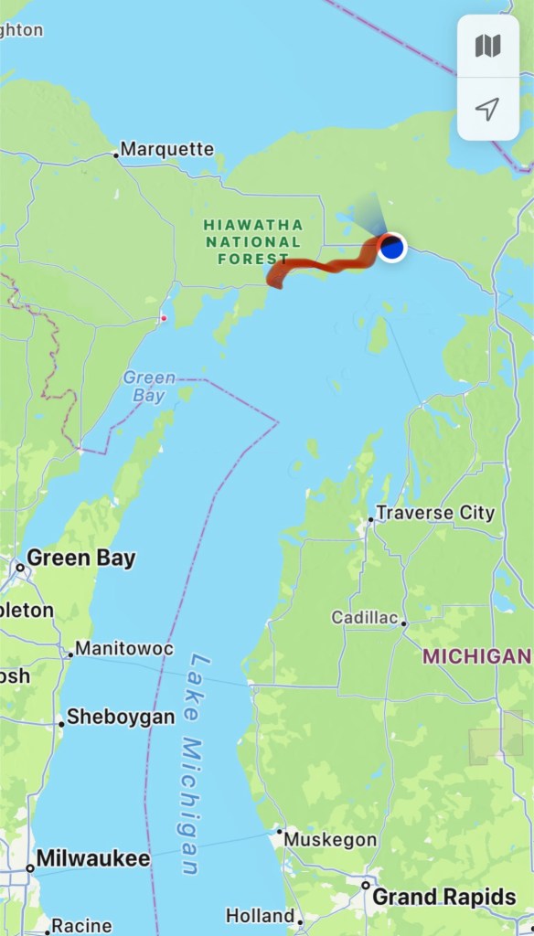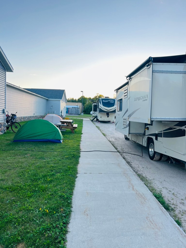 Shortly after leaving Caleb (6 miles) we were in Naubinway. The northernmost point on Lake Michigan. Very small town with a Snowmobile Museum… which happens to be a Harvest Host! I did not realize this but thought I’d ask if we could camp behind the museum for the night. The manager Charlie said yes as a matter of fact we could! He’s a Harvest Host! There are 2 RV’s camped here and our two tents. $5 (price of admission to camp).