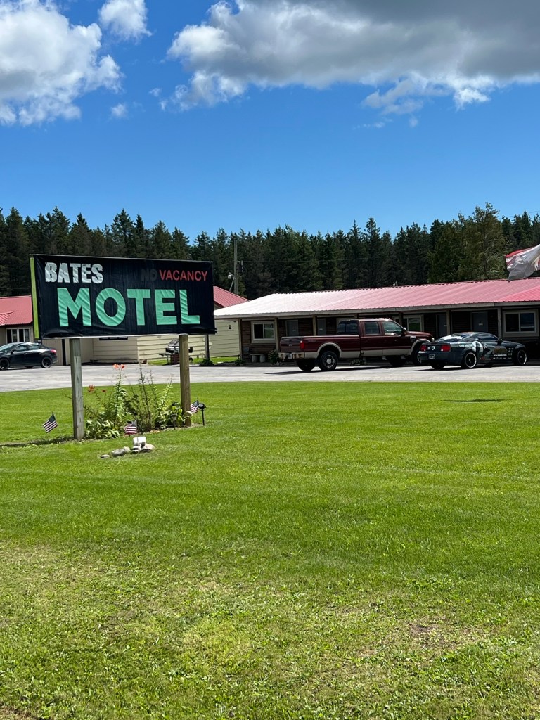 A few miles after Manistique there was really nothing for 13 miles. We usually take a short “butt break” every 10 miles. There was a post office at mile 13 so we pulled in to take a short break. While we were there the post woman stepped out and said hello. Mentioned how cold it was this morning but she refuses to grab a jacket because then she won’t acclimate when it’s really, really frozen north cold! She went back inside and Jim commented that the beer tender at the microbrewery last night said the exact same thing! Then I remembered the older dyed blonde lady with the green eyeshadow from the brewery! (Couldn’t forget her). Yup… same lady. She works 3 jobs… post office all day, brewery after 5, and Fish Fry Fridays somewhere else I’ve forgotten! Sorry no photo. Michigan nice